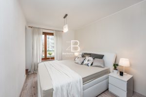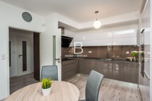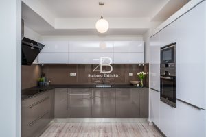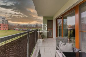 Kuchyňská linka značky Hanák je vybavena vestavěnou myčkou, horkovzdušnou troubou, mikrovlnnou troubou, lednicí, mrazákem, indukční deskou a digestoří. K bytu dále náleží sklep, prostorná lodžie se vstupem z obývacího pokoje i ložnice a společná zabezpečená kolárna.