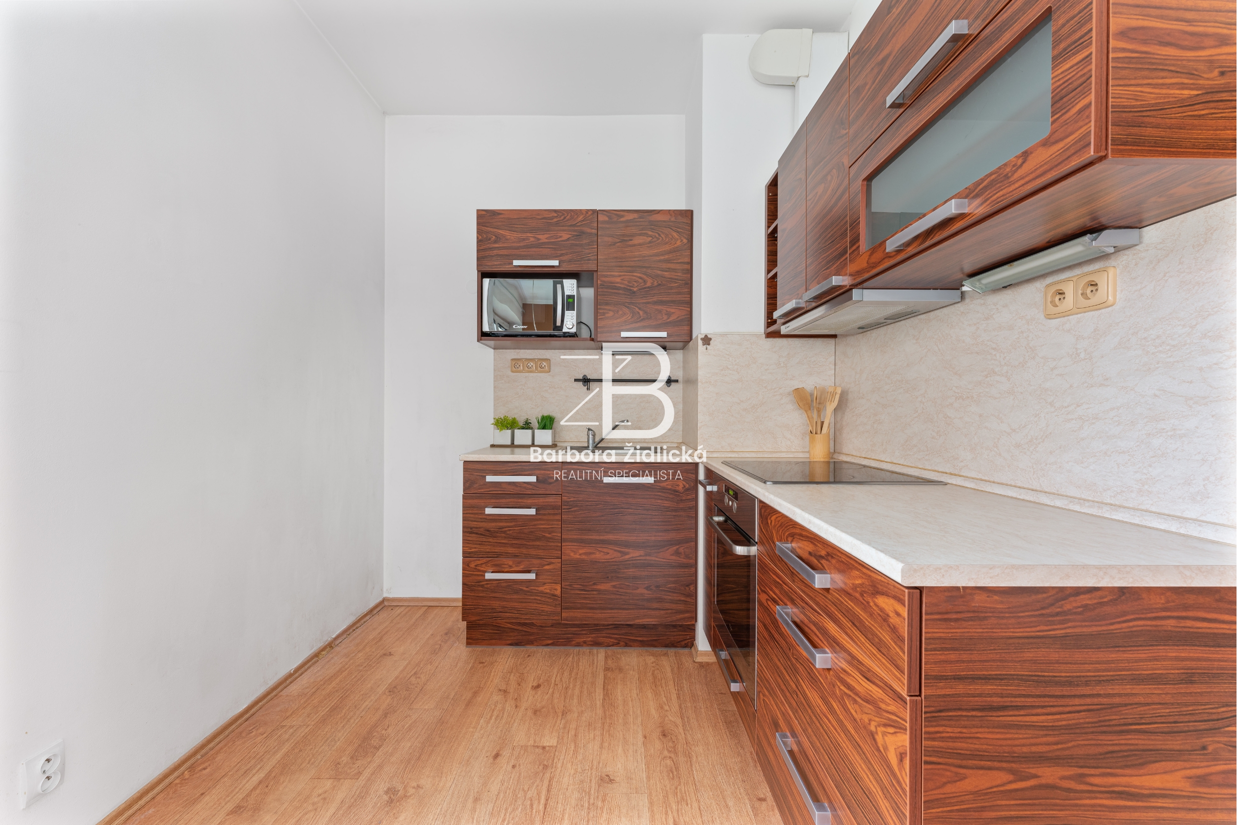 Nechybí moderní plně vybavená kuchyňská linka dělaná na míru od firmy SAV, varná deska a trouba jsou značky Whirlpool, mikrovlnka Candy. V obou pokojích tvoří podlahovou krytinu kvalitní PVC, chodbu a koupelnu pokrývá dlažba. V bytě jsou plastová okna, díky kterým je v bytě dostatek světla. Vnitřní dveře jsou kašírované od firmy Sepos. V bytě navíc zůstává obývací stěna, která je skvělým doplňkem bytového interiéru. Jsou zde nízké měsíční náklady na bydlení. Byt má vlastní vodoměry na teplou a studenou vodu. Vytápění je dálkové.