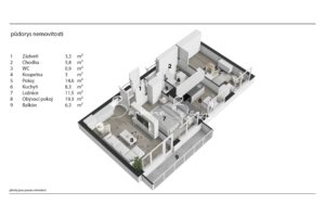 Součástí jednotky (71,08 m²) je dále zasklená lodžie (7,2 m²), komora na patře (1,45 m²) a sklep (1,20 m²). V domě je možné využívat také společnou kolárnu, přičemž společné prostory jsou zabezpečeny kamerovým systémem. Bytový dům prošel revitalizací přibližně před 10 lety – proběhlo zateplení domu, výměna oken za plastová a zasklení lodžií.