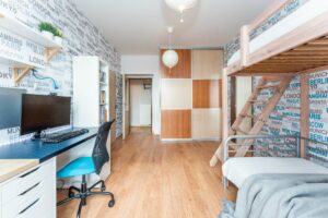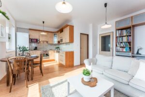 Byt v osobním vlastnictví o dispozici 3+kk s celkovou plochou 69,20m2, který se nachází v 1. patře revitalizovaného cihlového domu bez výtahu. Nachází se v klidné části města Jaroměř, v ulici Palackého 220, Jakubské Předměstí. Možné je využívat i společnou kolárnu a kočárkárnu. V roce 2007 proběhla kompletní rekonstrukce bytu i bytového domu.