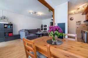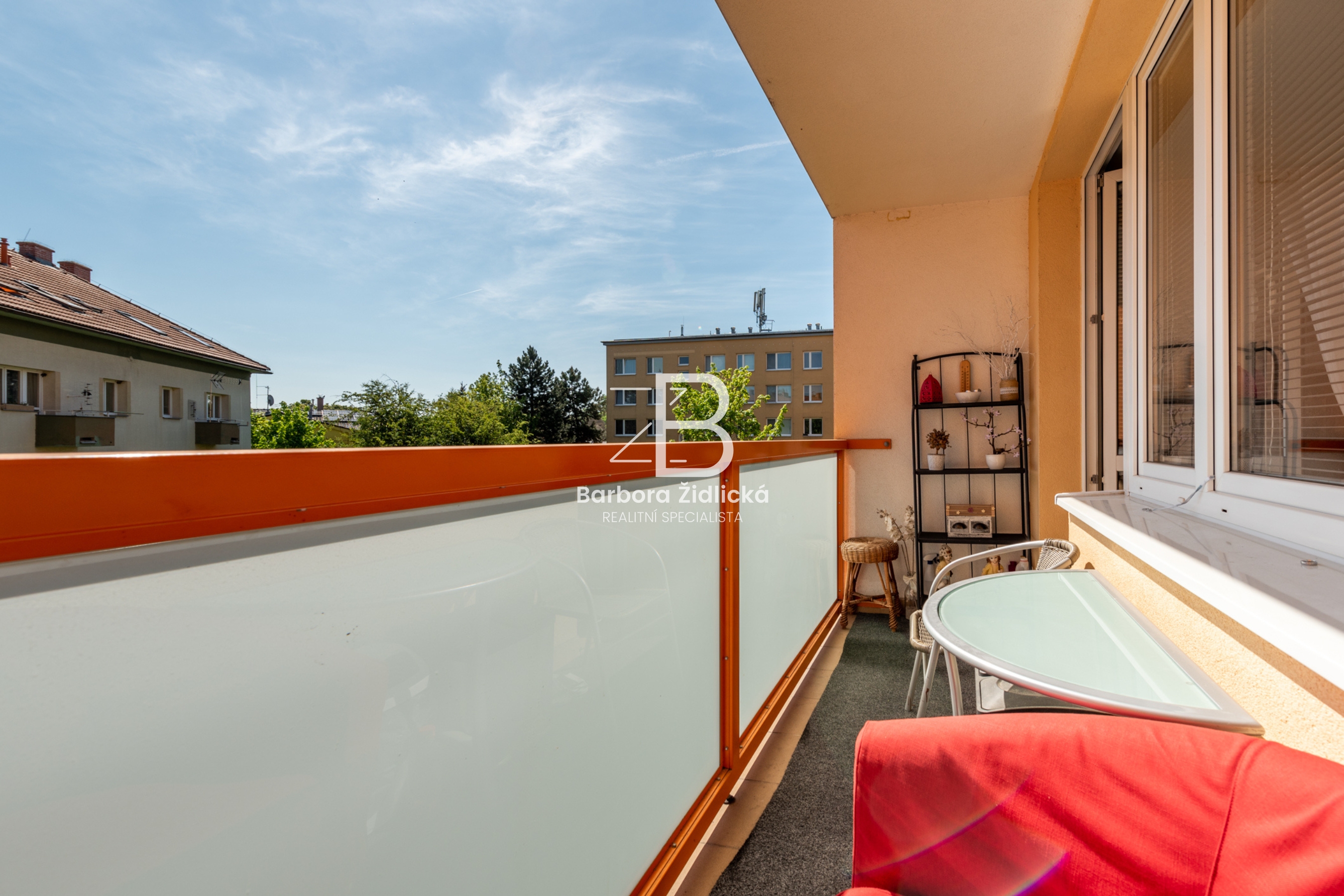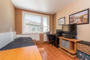 V bytě proběhla rekonstrukce v roce 2010 – podlahy, omítky, koupelna, WC, propojení jídelny a obývacího pokoje. Součástí prodeje je kuchyňská linka. Plocha bytu činí 83,1m2 a náleží k němu lodžie (6,5m2) a sklepní kóje (1,7m2). Je zde také možnost využití kolárny a kočárkárny.