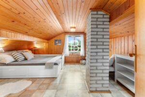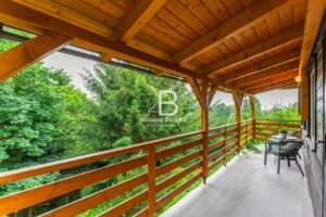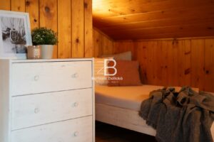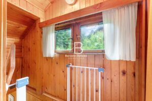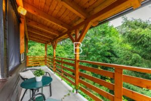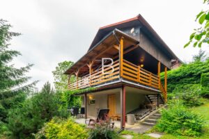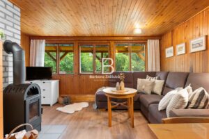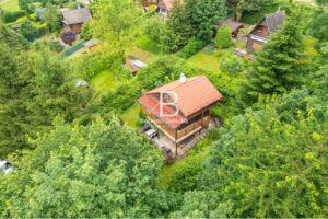 Stavba je smíšená a nabízí prostornou obývací místnost s krbem a výhledem do korun stromů, kuchyň s jídelním koutem, koupelnu se sprchou a WC. Vedle obytného podkroví se nachází i „půdní prostor“ pro uložení věcí. Chata se prodává kompletně vybavená a je tedy připravena k okamžitému užívání, případně i trvalému bydlení. Je ale vhodná i za účelem investice pro krátkodobý pronájem, a to pro celý rok. Je napojena na obecní vodovod (celoročně) a odpadní vody jsou svedeny do jímky. Vytápění je zajištěno přes krbová kamna a ohřev vody přes elektrický bojler.