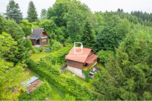 Rekreační chata v obklopení vzrostlých stromů, zajišťující dokonalé soukromí.