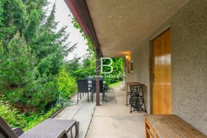 K pozemku o rozloze 347 m2 (z toho zastavěná plocha 48 m2) vede obecní příjezdová cesta, kde je možné i parkovat. Terasa i balkon jsou orientovány na jih, zahrada na západní stranu a je ohraničena plotem. V suterénu chaty se navíc nachází technická místnost a kůlna pro uložení zahradních a sezónních věcí.