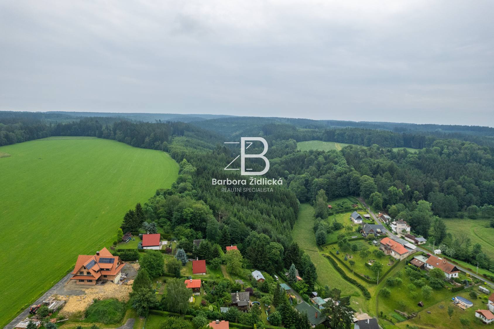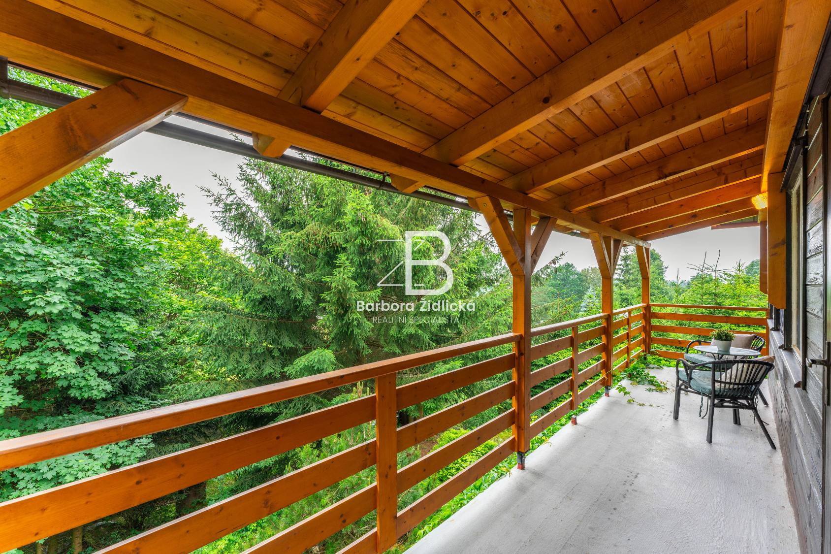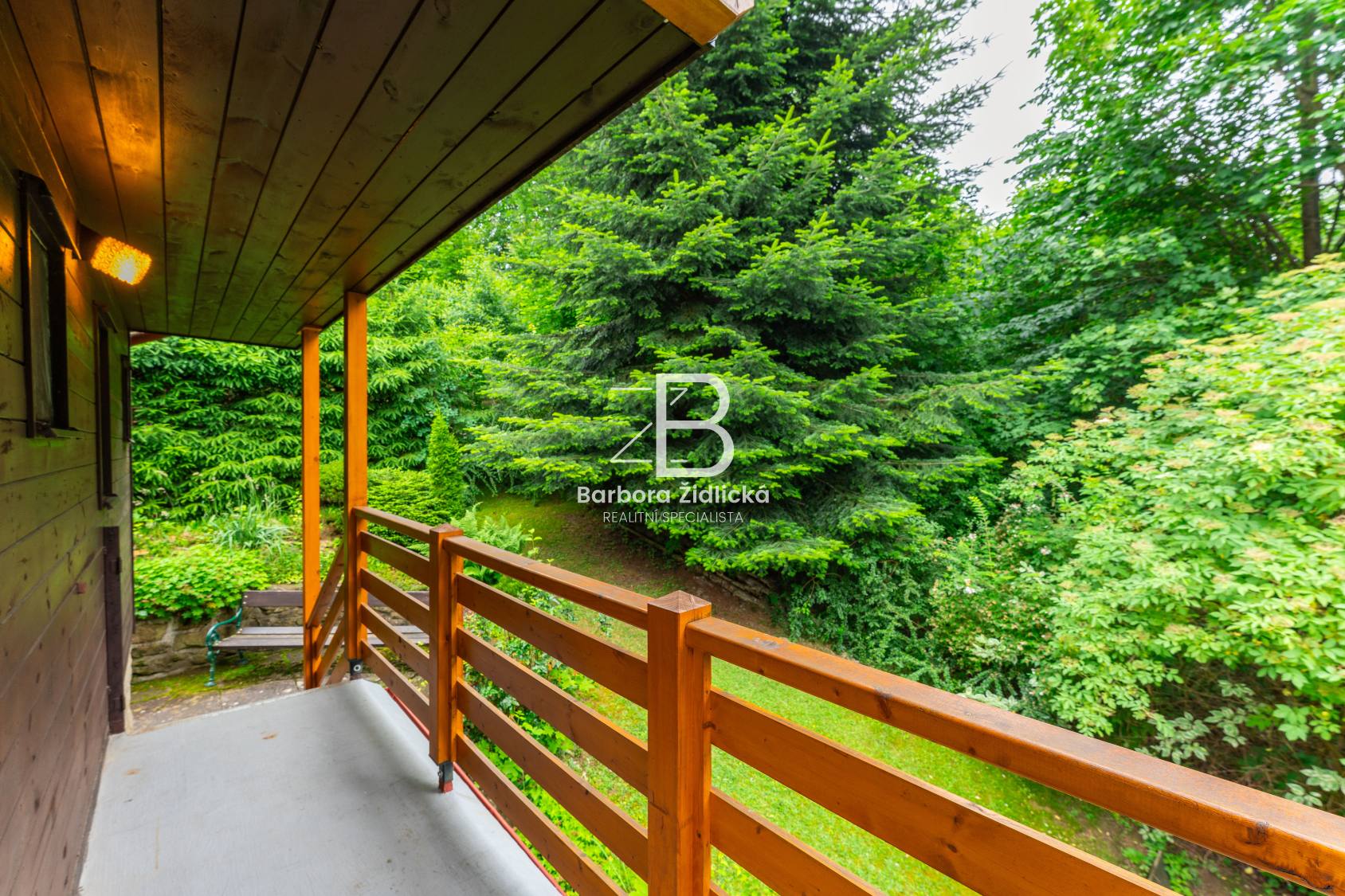 Rekreační chata v obklopení vzrostlých stromů, zajišťující dokonalé soukromí.