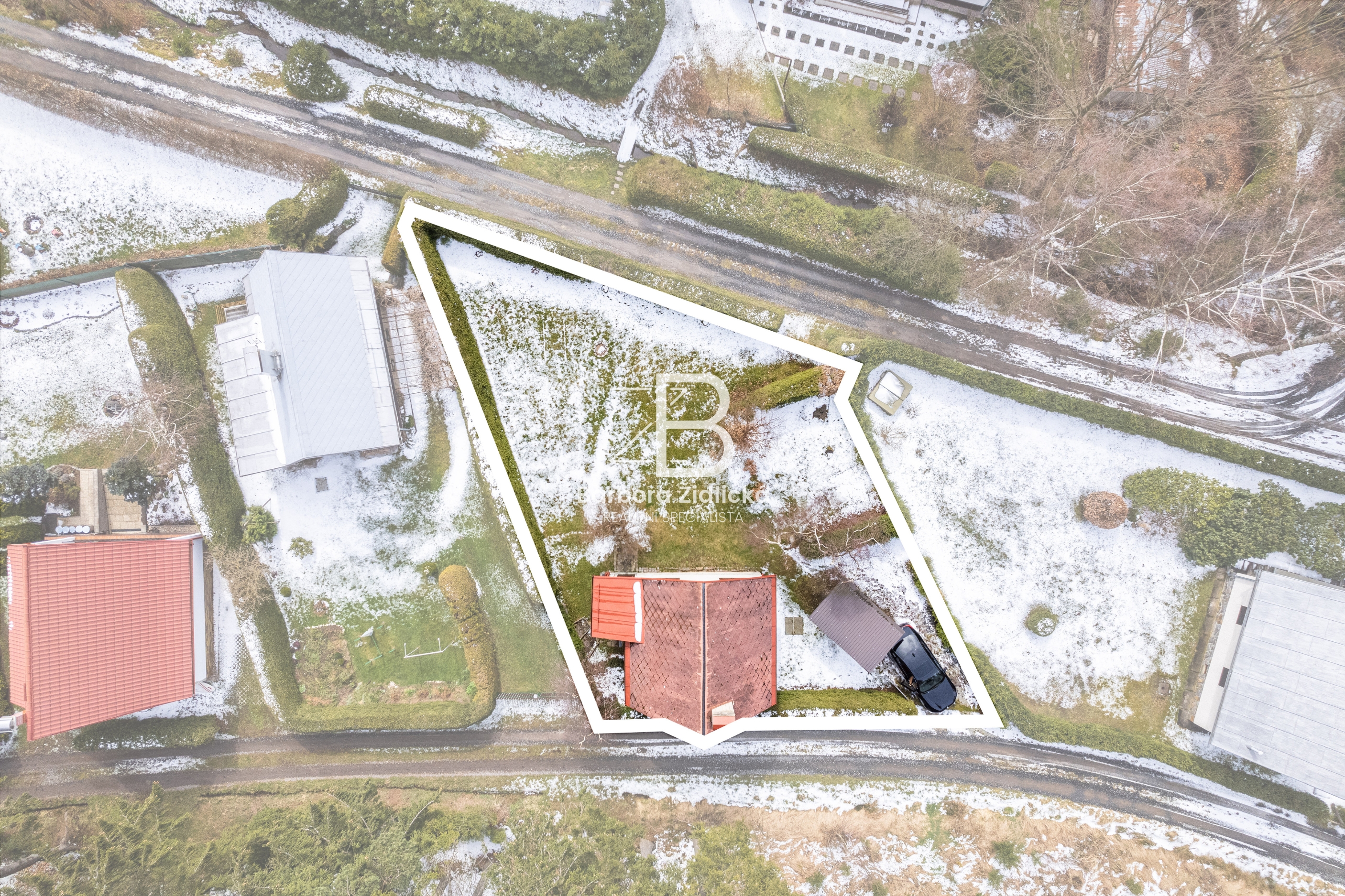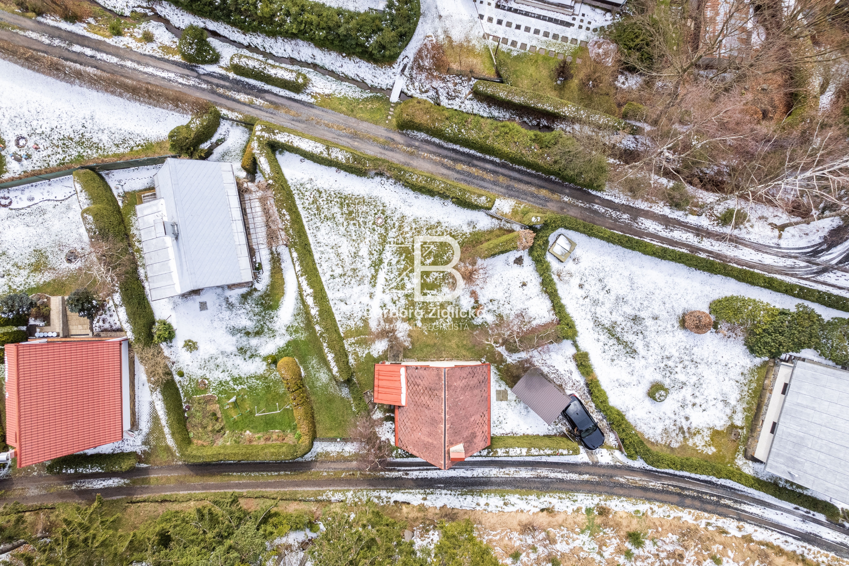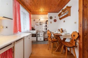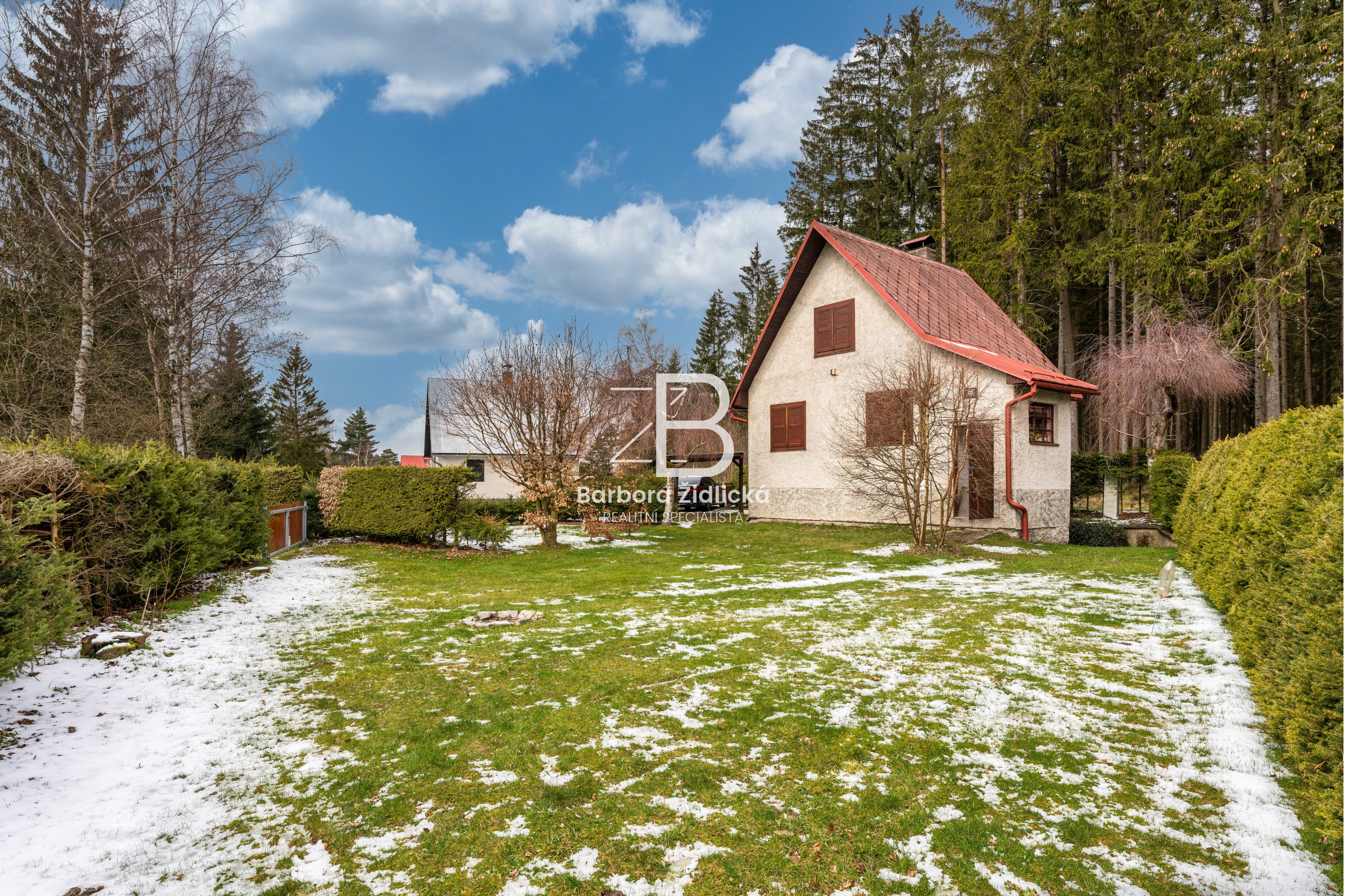 Pozemek o rozloze 457 m2 má dvě přístupové cesty a přístřešek na auto. Zahrada je orientovaná na jih a ohraničena živým plotem. Stavba je cihlová a nabízí prostornou obývací místnost s krbem, kuchyň s jídelním koutem, koupelnu se sprchou a WC. Nad obytným podkrovím se nachází i půdní prostor pro uložení věcí. Chata je podsklepená, napojena na veřejný vodovod (uzávěr na pozemku) a odpad je sveden do betonové jímky. Vytápění řešeno krbovými kamny a v podkroví jsou kamna na uhlí. Chata se prodává včetně vybavení.