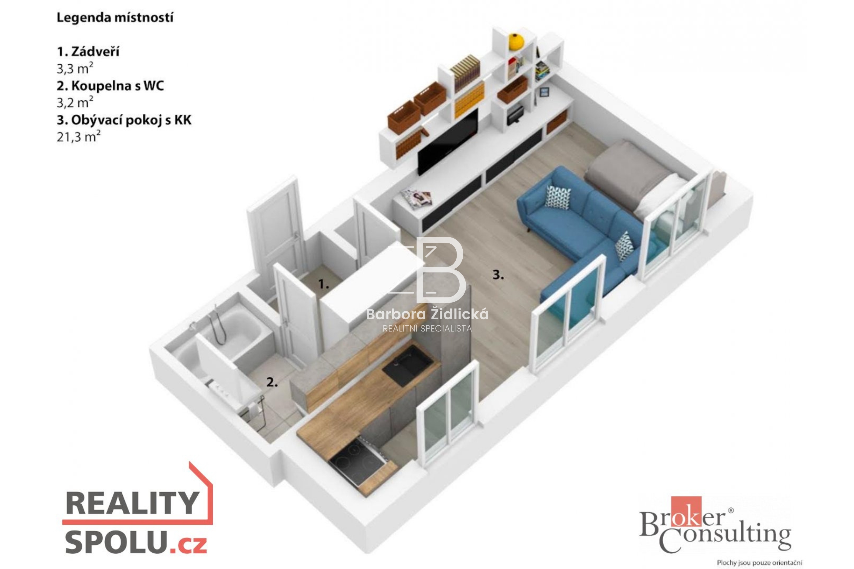Cena je uvedena bez záloh na energie (2.500 Kč), provize (11.500 Kč + DPH) a vratné kauce (20.000 Kč).