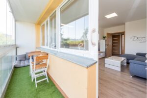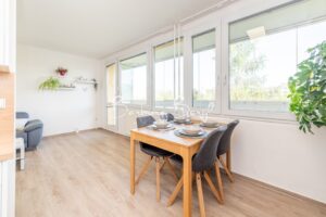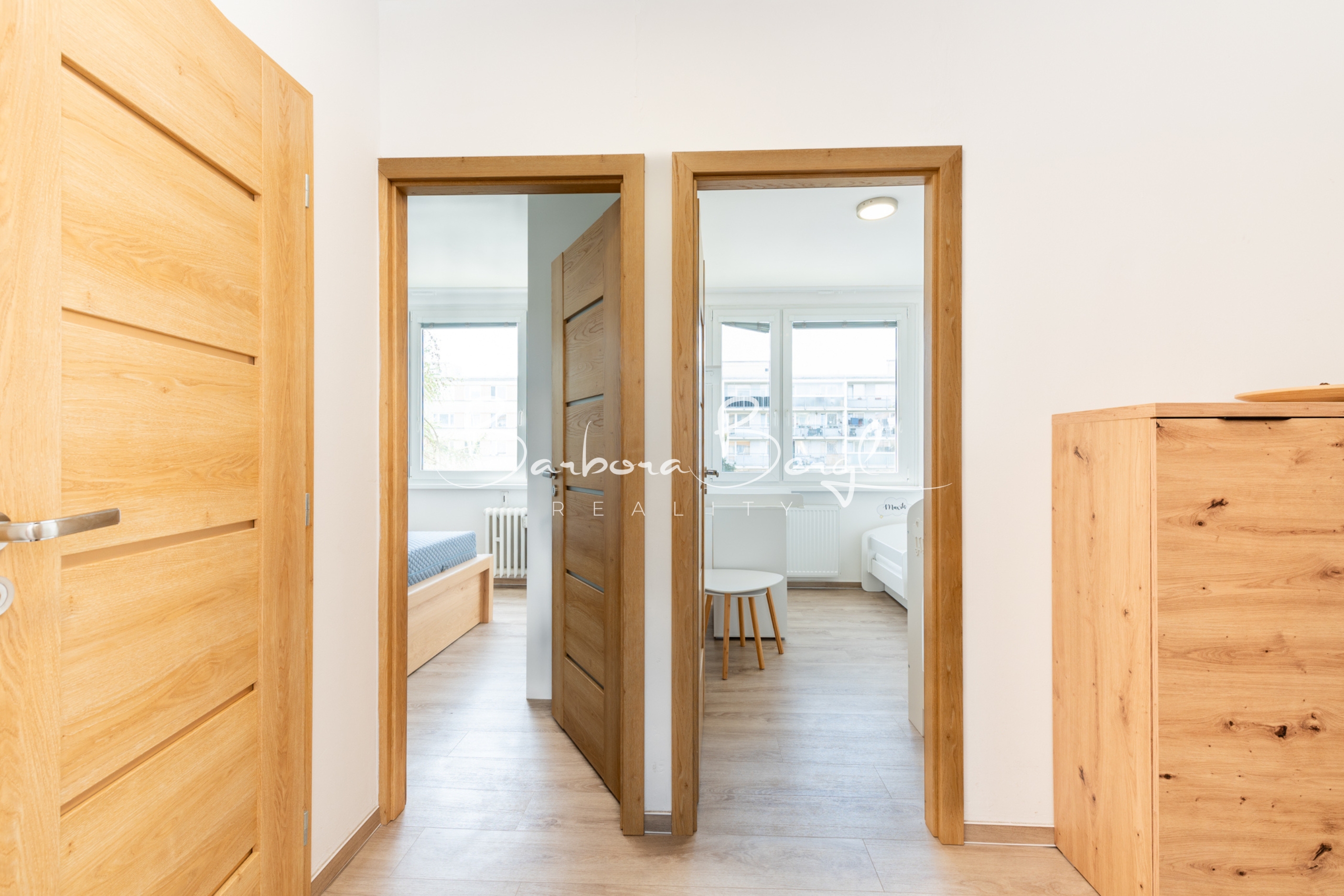 Dlouhodobý pronájem rekonstruovaného a vzdušného bytu o dispozici 3+kk s krásným výhledem. K bytu náleží zasklená lodžie s výhledem do zeleně a sklep na patře. Byt má celkovou rozlohu 59 m2 a nachází se v panelovém domě s výtahem, v klidné lokalitě, v ulici Varnsdorfská, Praha 9-Střížkov.