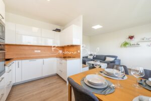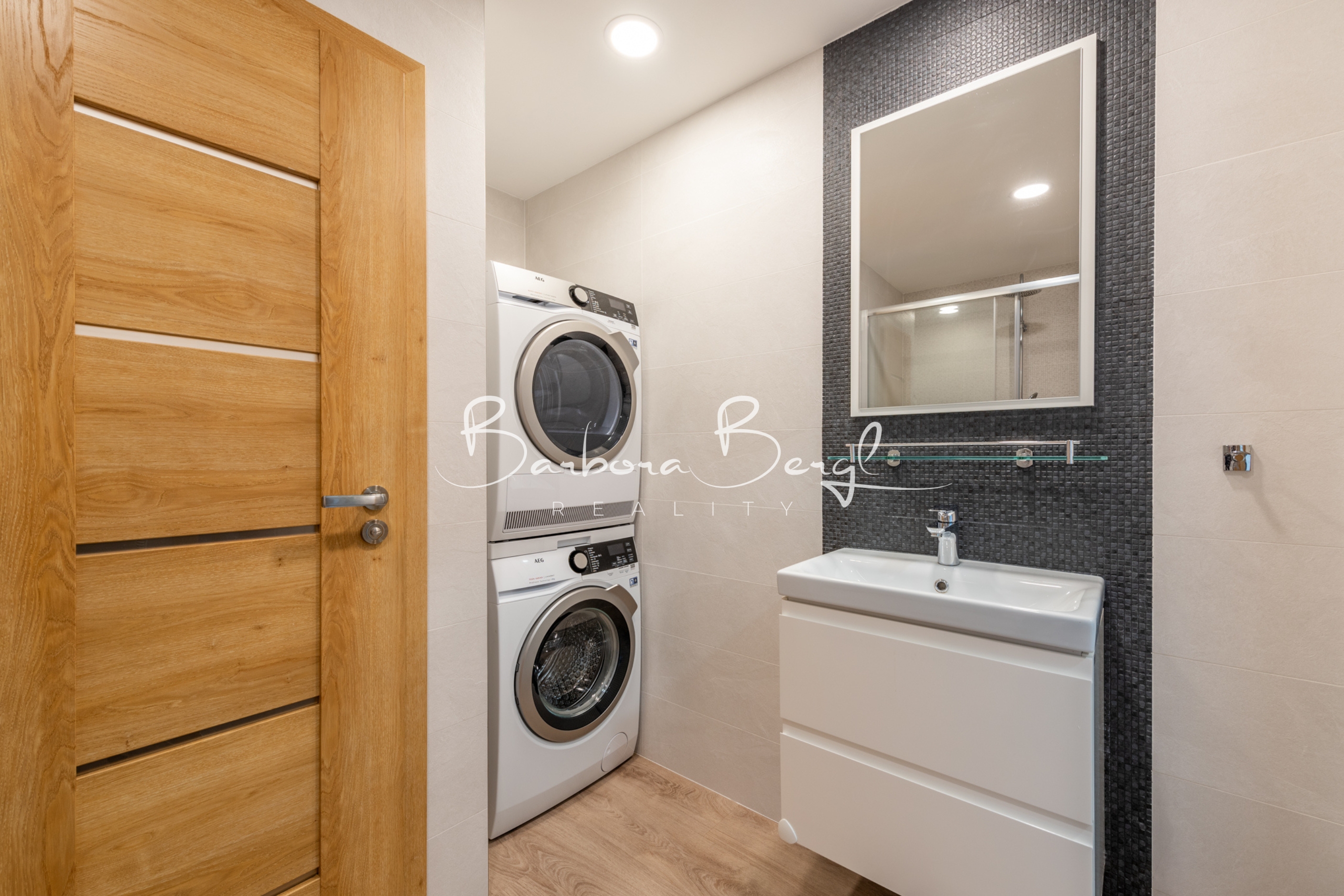 Pronajímá se s kuchyňskou linkou, komodou pod TV a vestavěnou skříní v chodbě i v ložnici. Kuchyňská linka je vybavena vestavěnou myčkou, mikrovlnnou troubou, elektrickou troubou, indukční varnou deskou a digestoří. Okna disponují vnitřními žaluziemi.