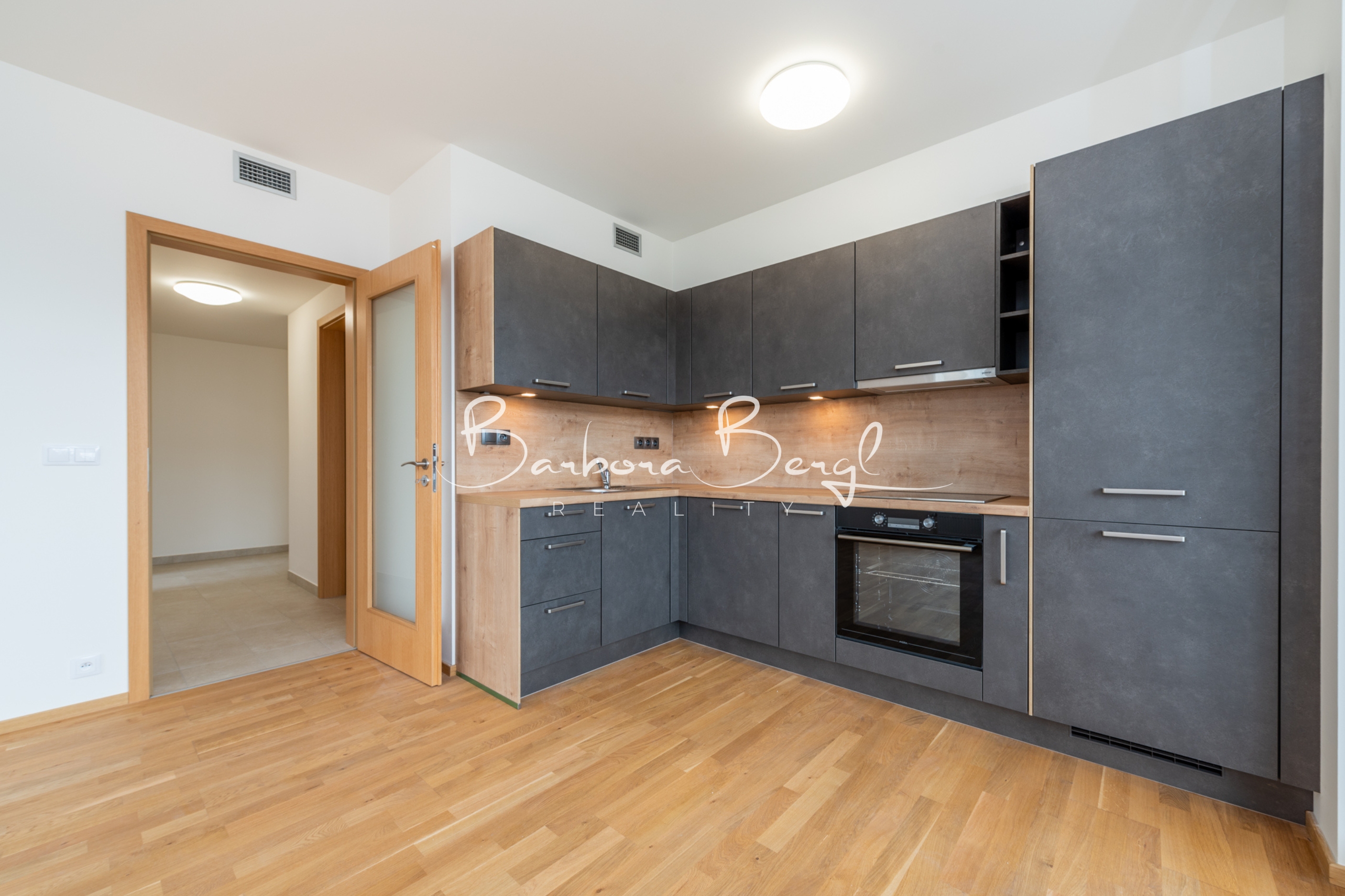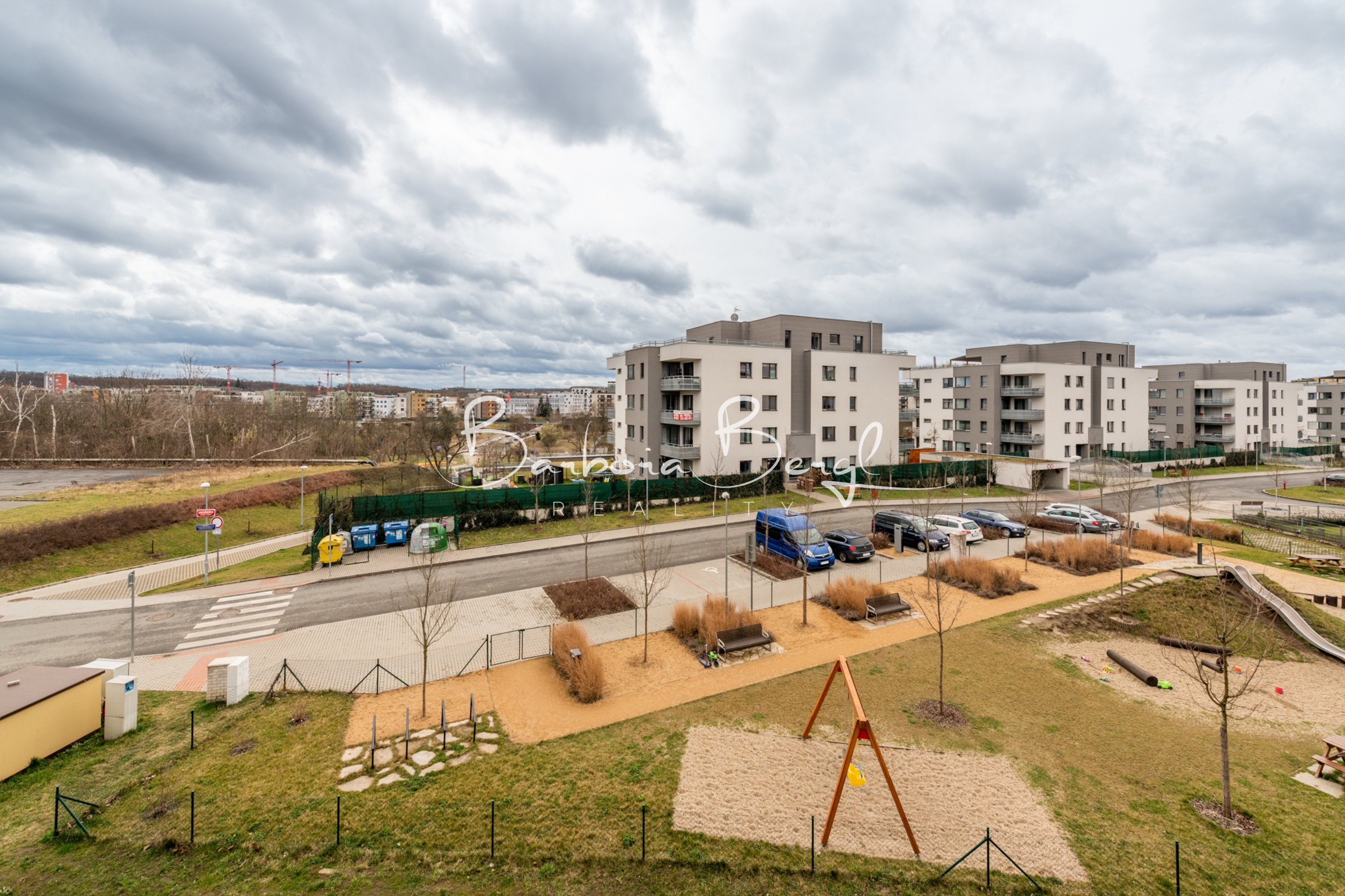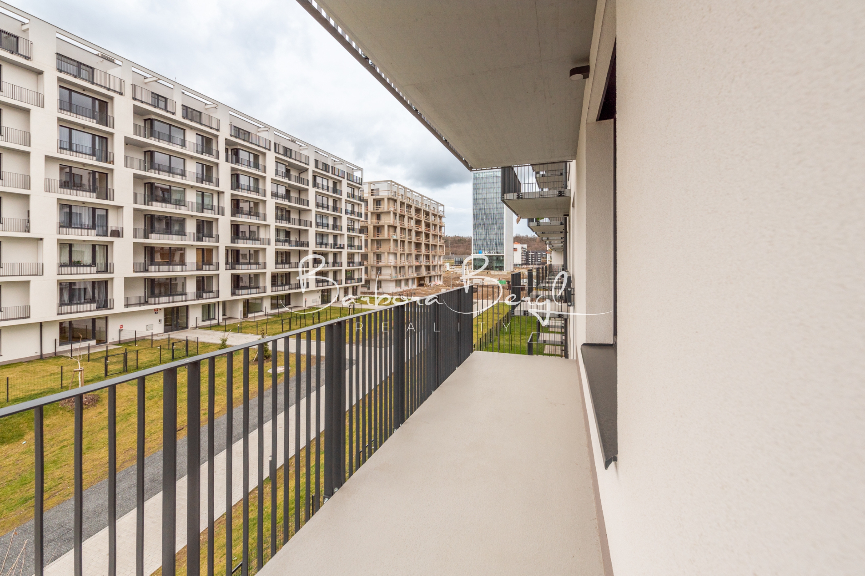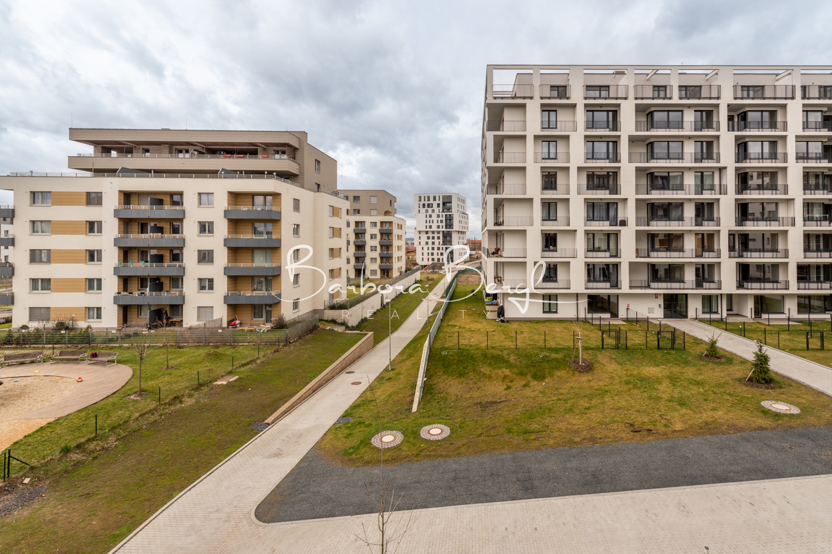 Dlouhodobý pronájem bytu s výhledem do parku, o dispozici 2+kk s balkonem 20m2. Součástí pronájmu je i sklep o rozloze 2m2. V domě je také kolárna. Kuchyňská linka je včetně vestavěné myčky, lednice s mrazákem, trouby, varné desky a digestoře. V bytě jsou také nainstalovány vnitřní žaluzie.