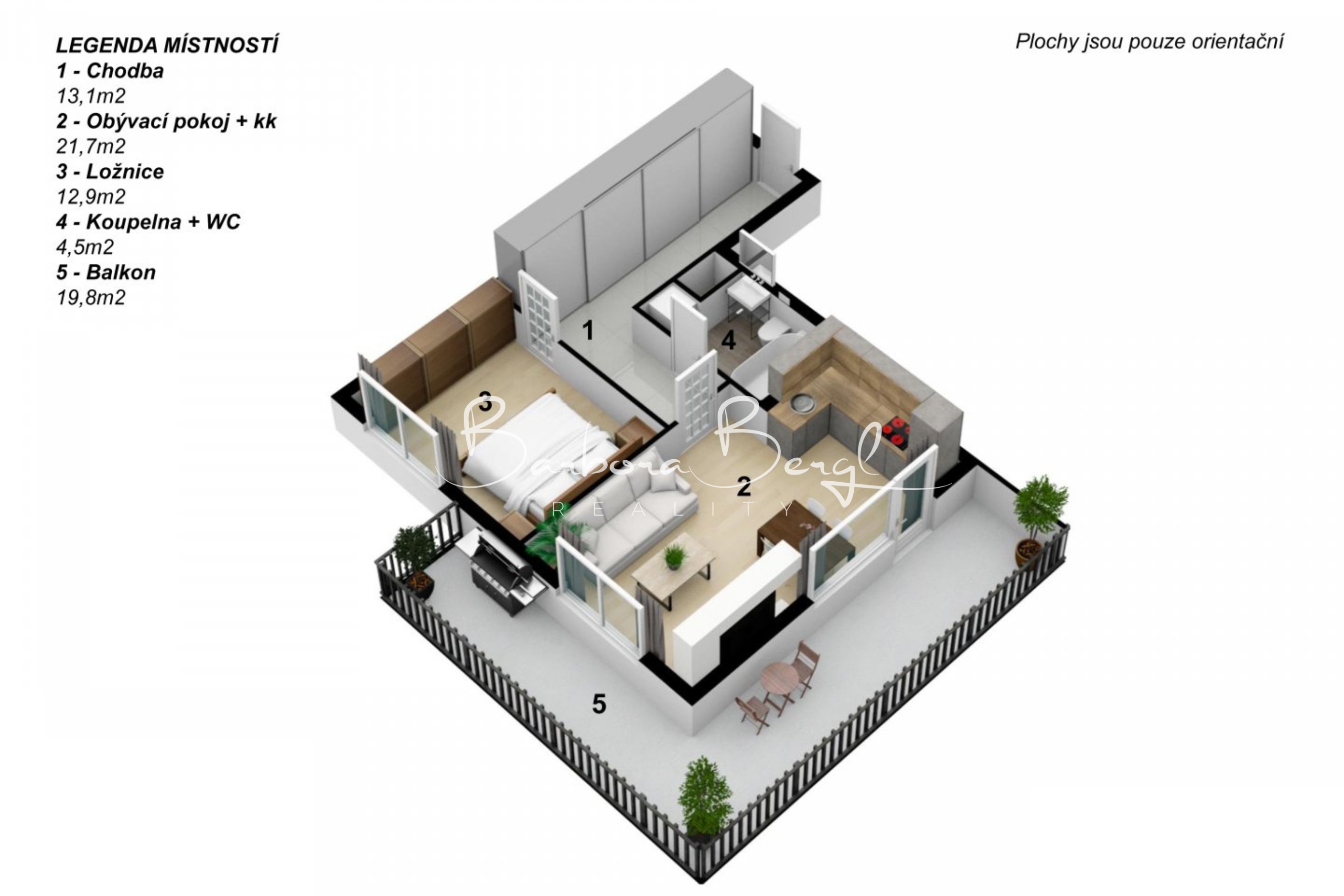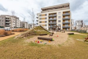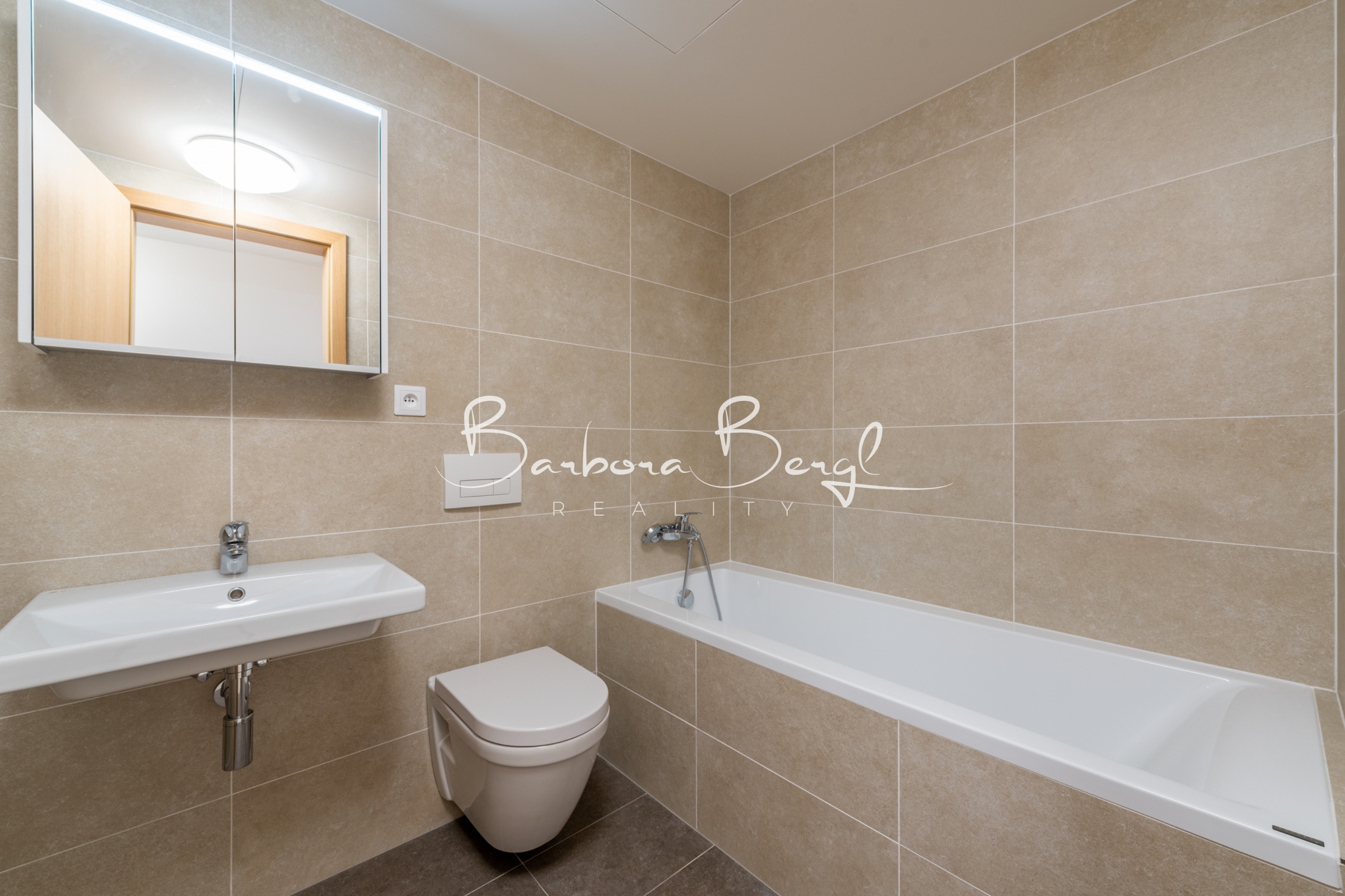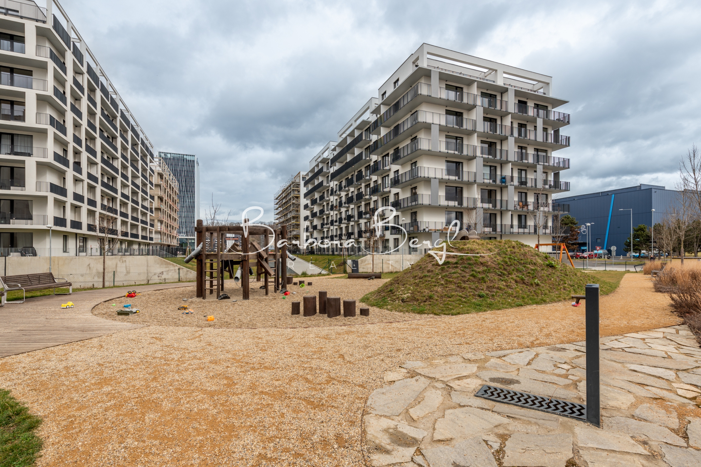 Dlouhodobý pronájem bytu s výhledem do parku, o dispozici 2+kk s balkonem 20m2. Součástí pronájmu je i sklep o rozloze 2m2. V domě je také kolárna. Kuchyňská linka je včetně vestavěné myčky, lednice s mrazákem, trouby, varné desky a digestoře. V bytě jsou také nainstalovány vnitřní žaluzie.