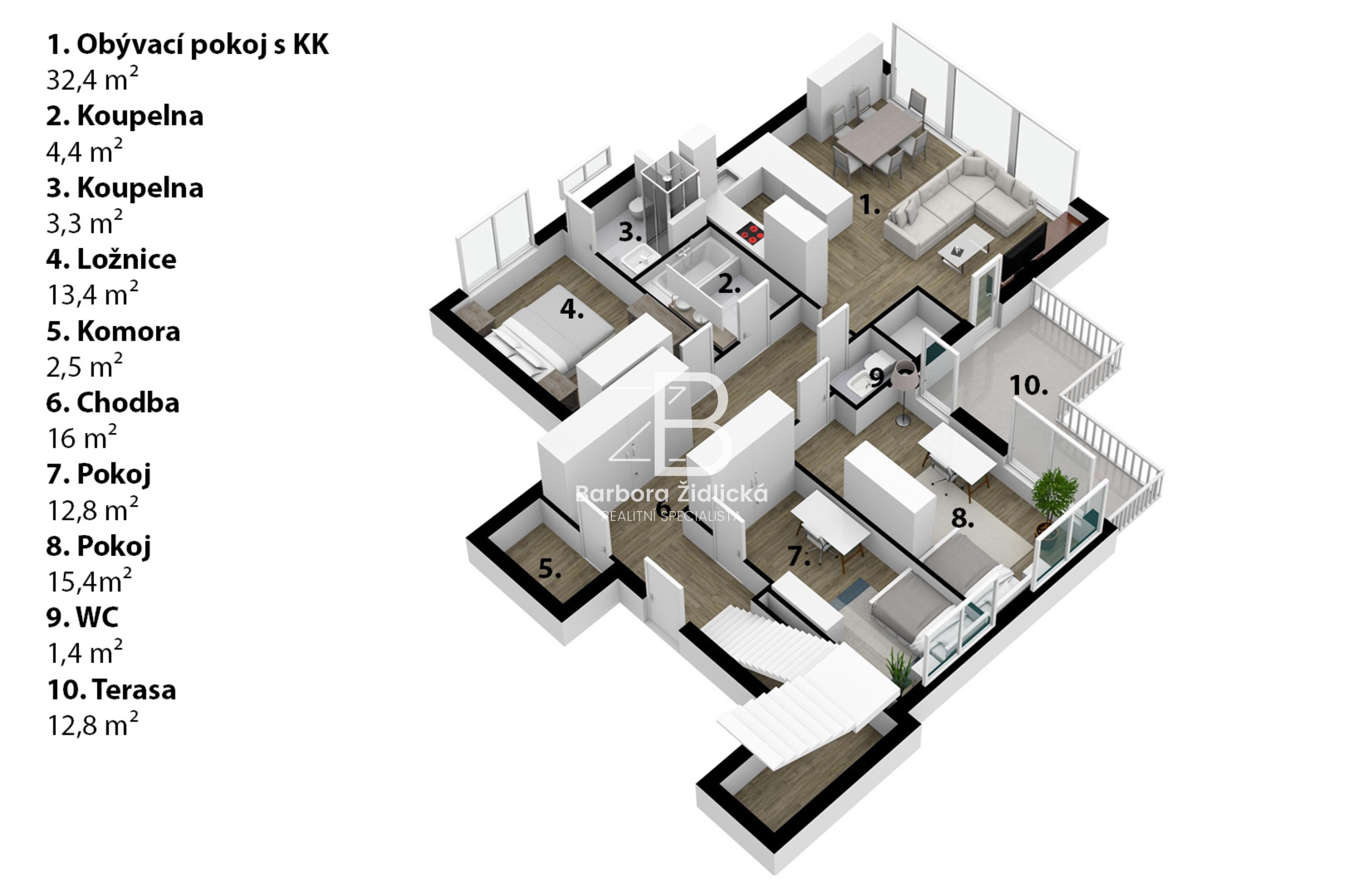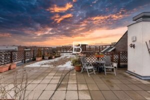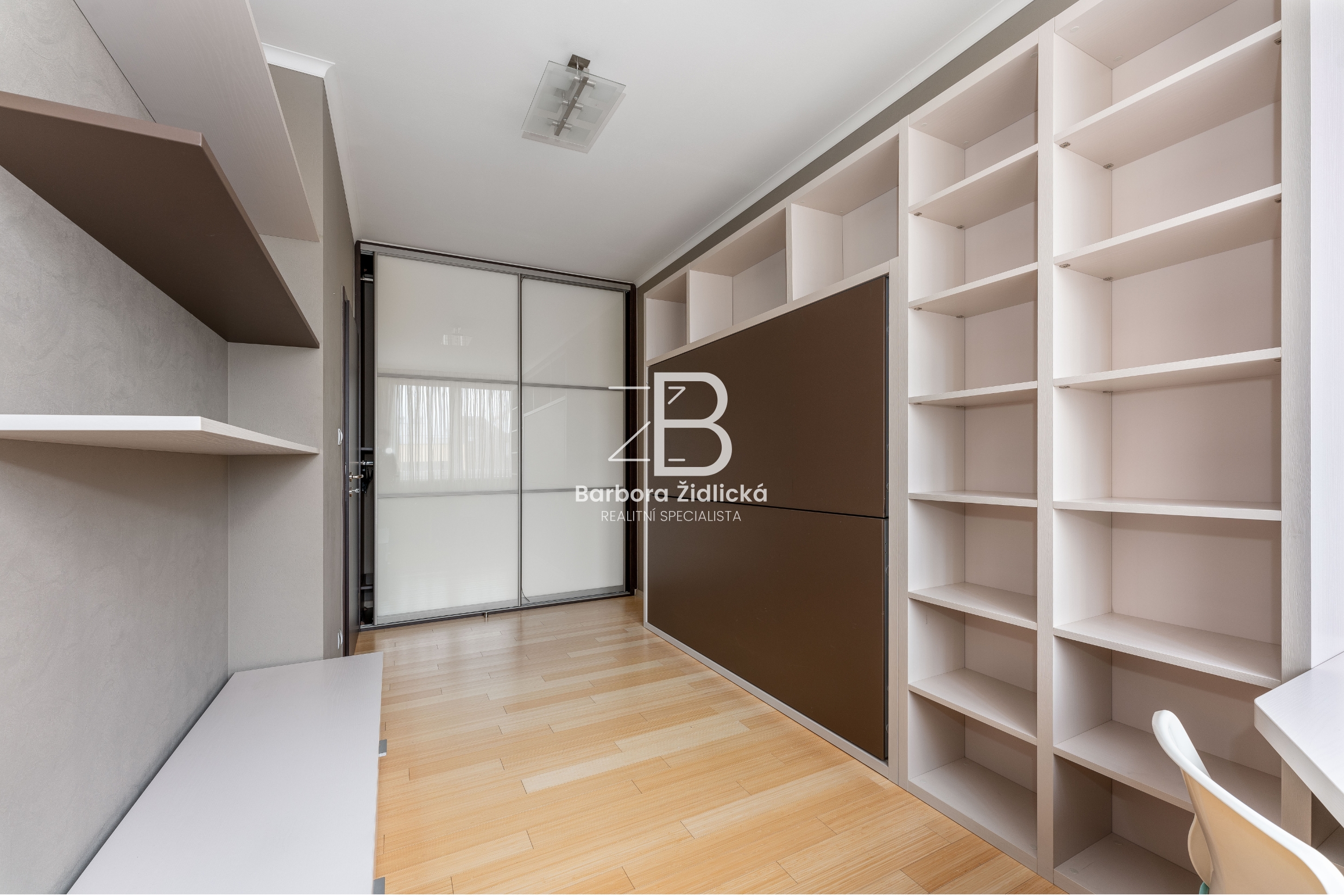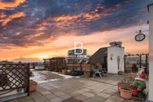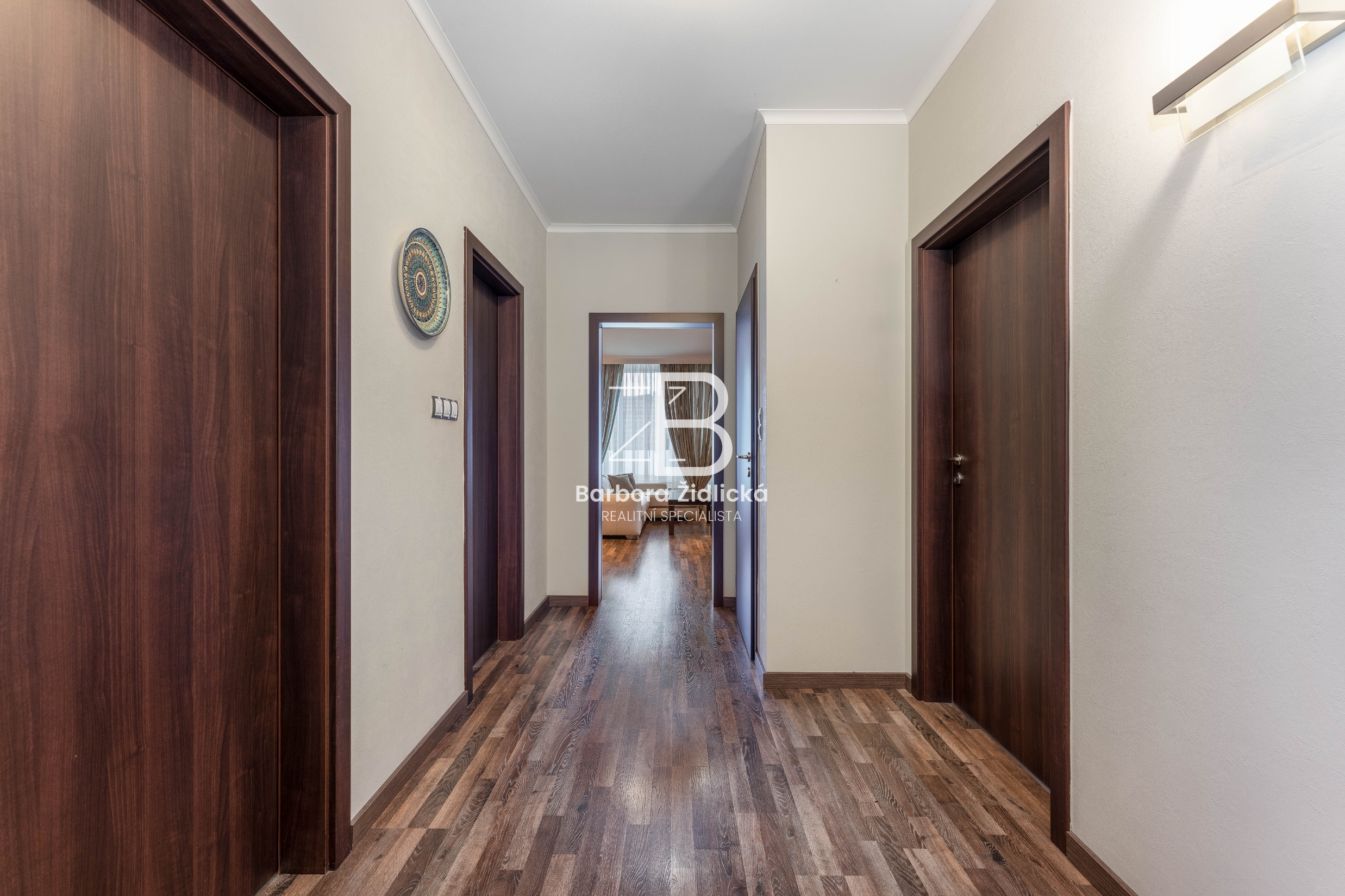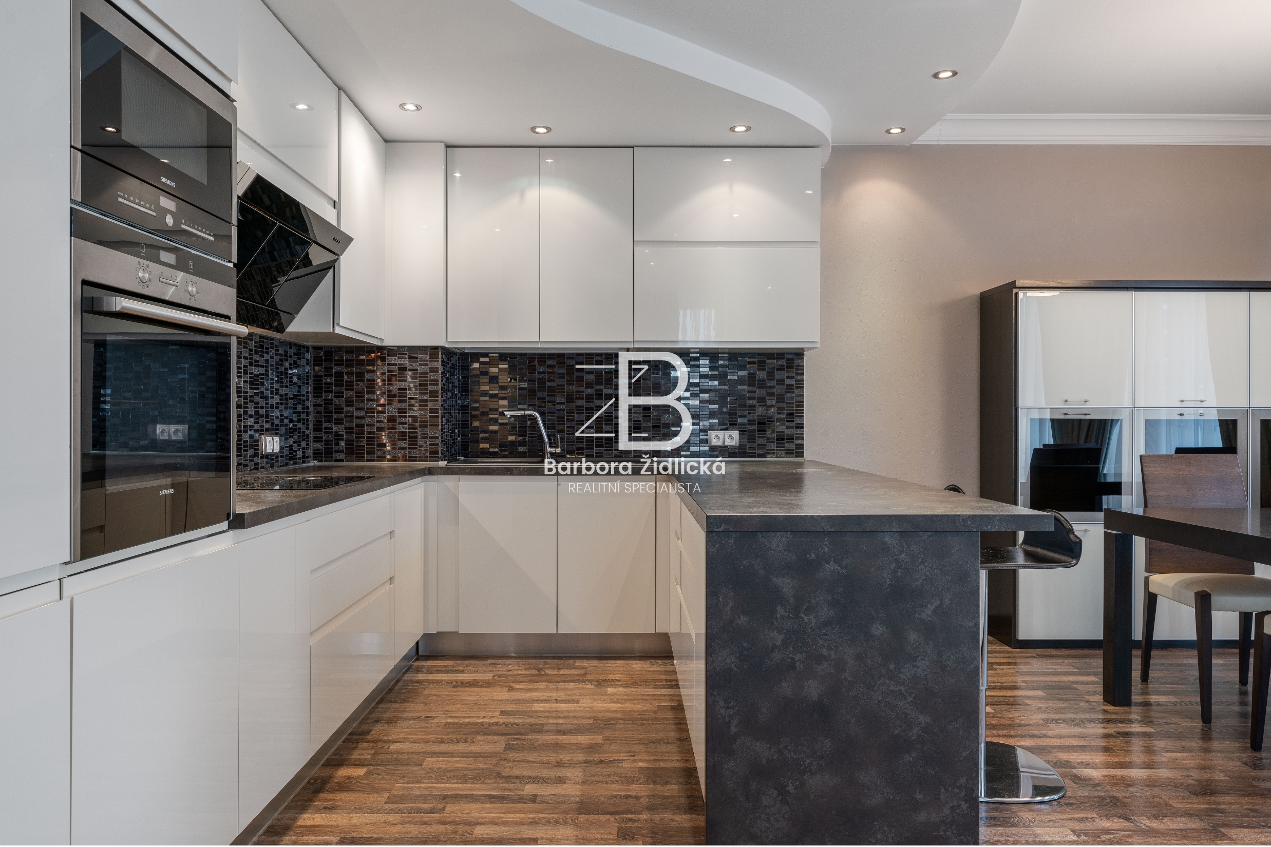 Pronájem nadstandardního bytu o dispozici 4+kk se střešní terasou o velikosti 200m2, kde si můžete užívat večery s pohledem na západ slunce. K bytu náleží i druhá terasa o výměře 13m2, která je přístupná z obývacího pokoje. Součástí pronájmu je i vnitřní parkovací stání. Možno pronajmout i druhé parkovací stání, které není zahrnuté v ceně.