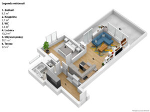 Cena je uvedena bez záloh na energie (2.215 Kč), vratné kauce (27.000 Kč) a provize (ve výši jednoho nájmu + DPH). Elektrická energie bude přehlášena na nájemce.