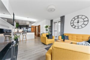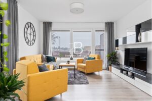 Byt se pronajímá vybaven: kuchyňská linka s vestavěnými spotřebiči včetně myčky, kovové barové židle, sedací souprava s konferenčním stolkem a kobercem, policový regál, obývací stěna, vestavěné skříně, postel s matracemi a stojací lampa. Nabízí se zde možnost odkupu pračky se sušičkou, která je umístěná ve vestavěné skříni a je rok stará. Možné je odkoupit i TV a skříňku pod umyvadlem.
