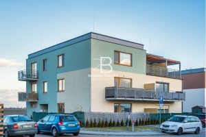 Byt se nachází ve 2. nadzemním podlaží cihlového domu bez výtahu. Podlahová plocha činí 59,36 m2, k němuž náleží i balkon s rozlohou 10,08 m2 a komora na patře o ploše 2,85 m2. Okna v obývacím pokoji disponují venkovními elektrickými žaluziemi. Součástí prodeje je i vlastní parkovací stání. Byt se pronajímá částečně vybaven: vestavěná skříň v ložnici a kuchyňská linka včetně vestavěných spotřebičů (bez lednice).