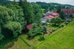 Řadový dům u řeky Malé Labe, v klidné obci Prosečné 141. Součástí prodeje je i oddělená zahrada o výměře 374 m2 a garáž pro jedno auto, která je vzdálená 150 m od domu.