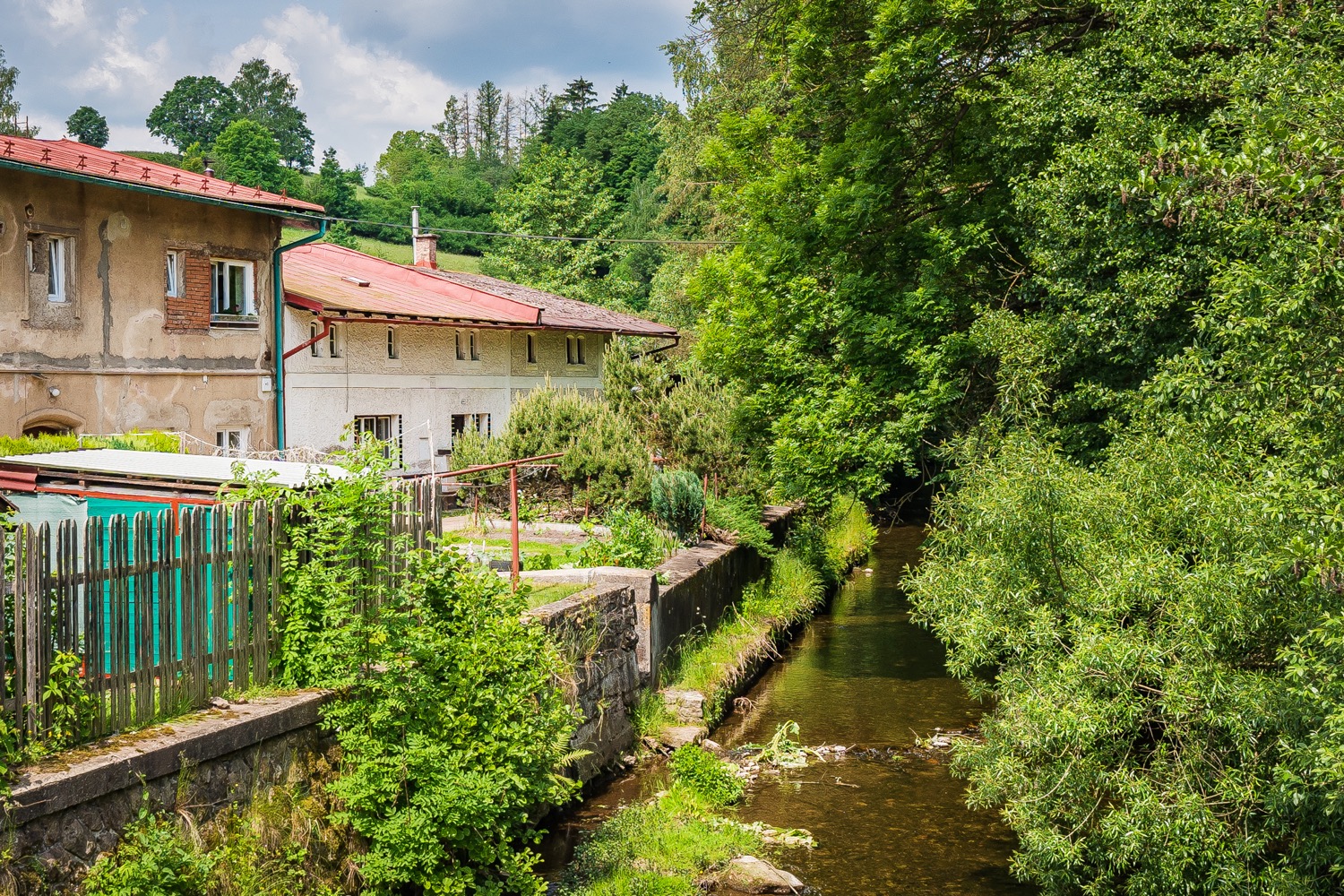 Řadový dům u řeky Malé Labe, v klidné obci Prosečné 141. Součástí prodeje je i oddělená zahrada o výměře 374 m2 a garáž pro jedno auto, která je vzdálená 150 m od domu.