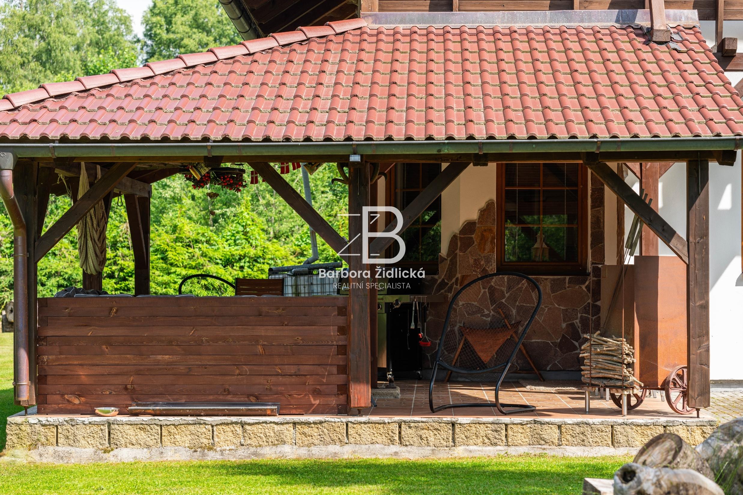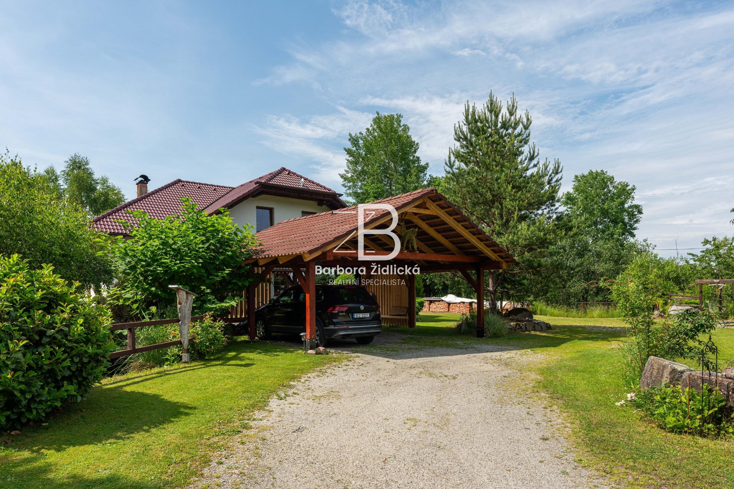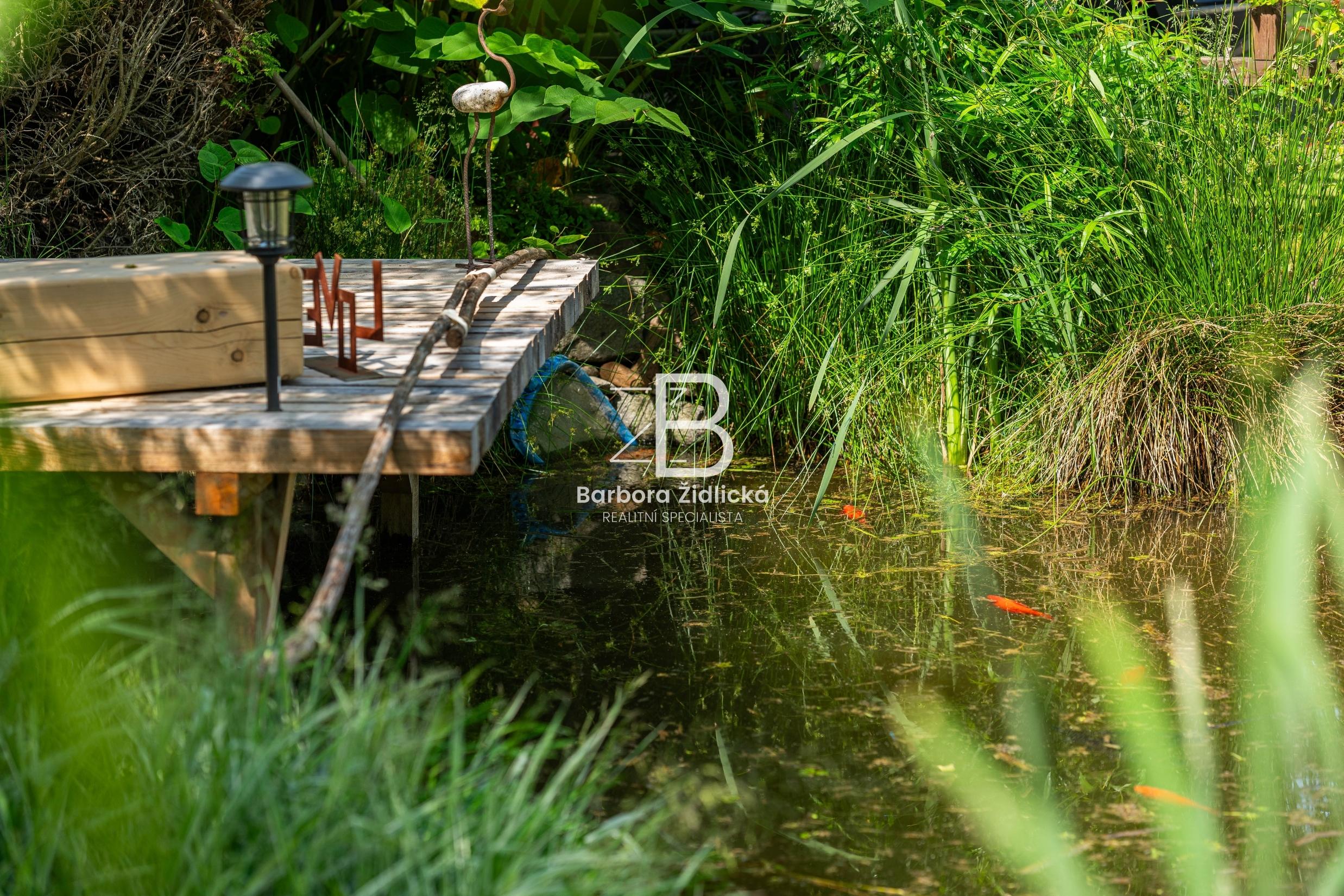 Celý pozemek o výměře 4235 m2 je obklopen vzrostlou zelení, která Vám zaručí naprosté soukromí. Součástí je útulná terasa s příjemným posezením a grilem pro Vás a Vaše přátele. Před domem se nachází přístřešek k parkování pro dvě auta. Třešničkou na dortu je jezírko s vlastním molem, u kterého se perfektně relaxuje.