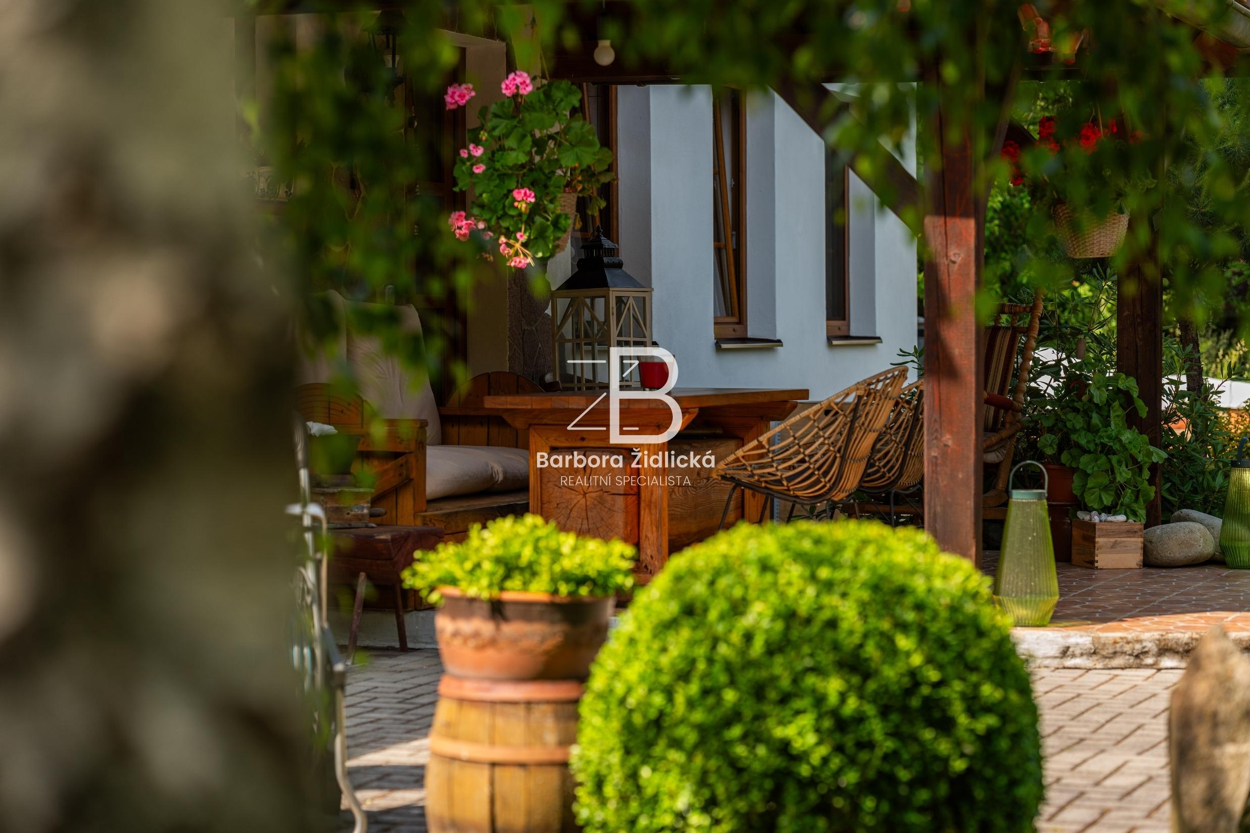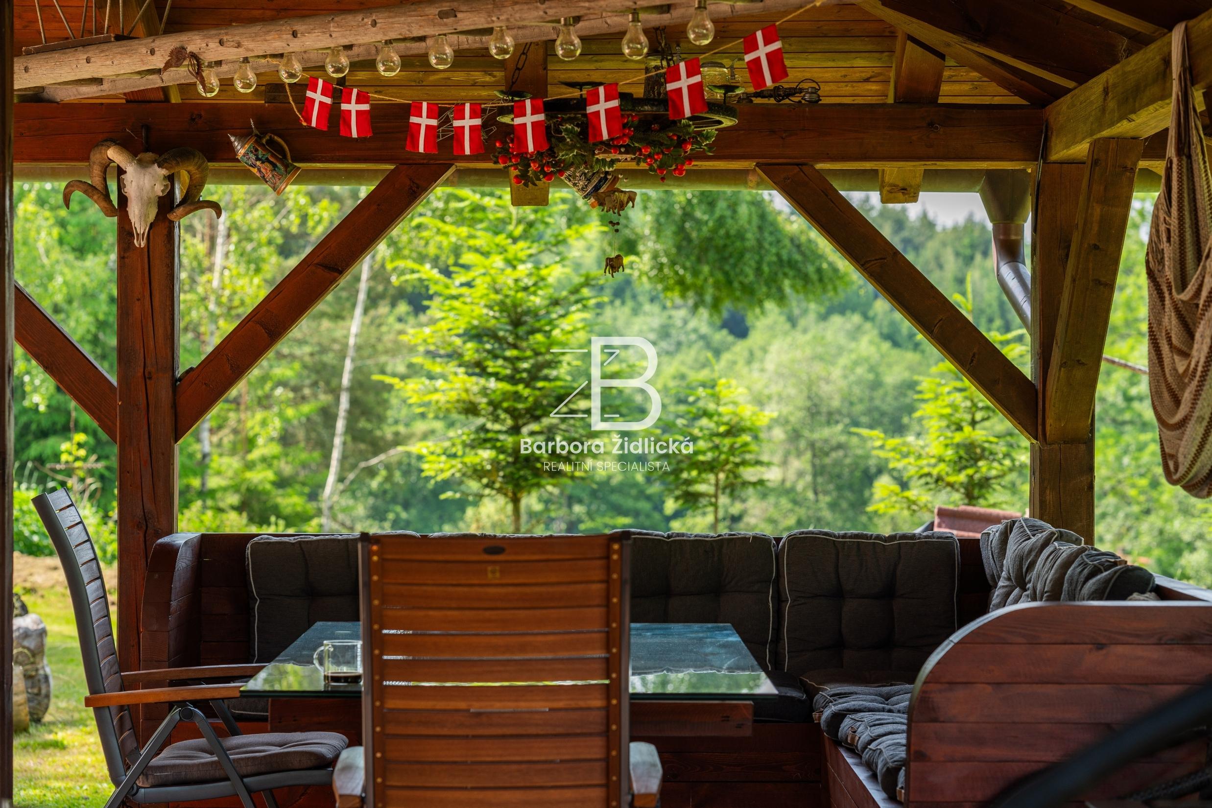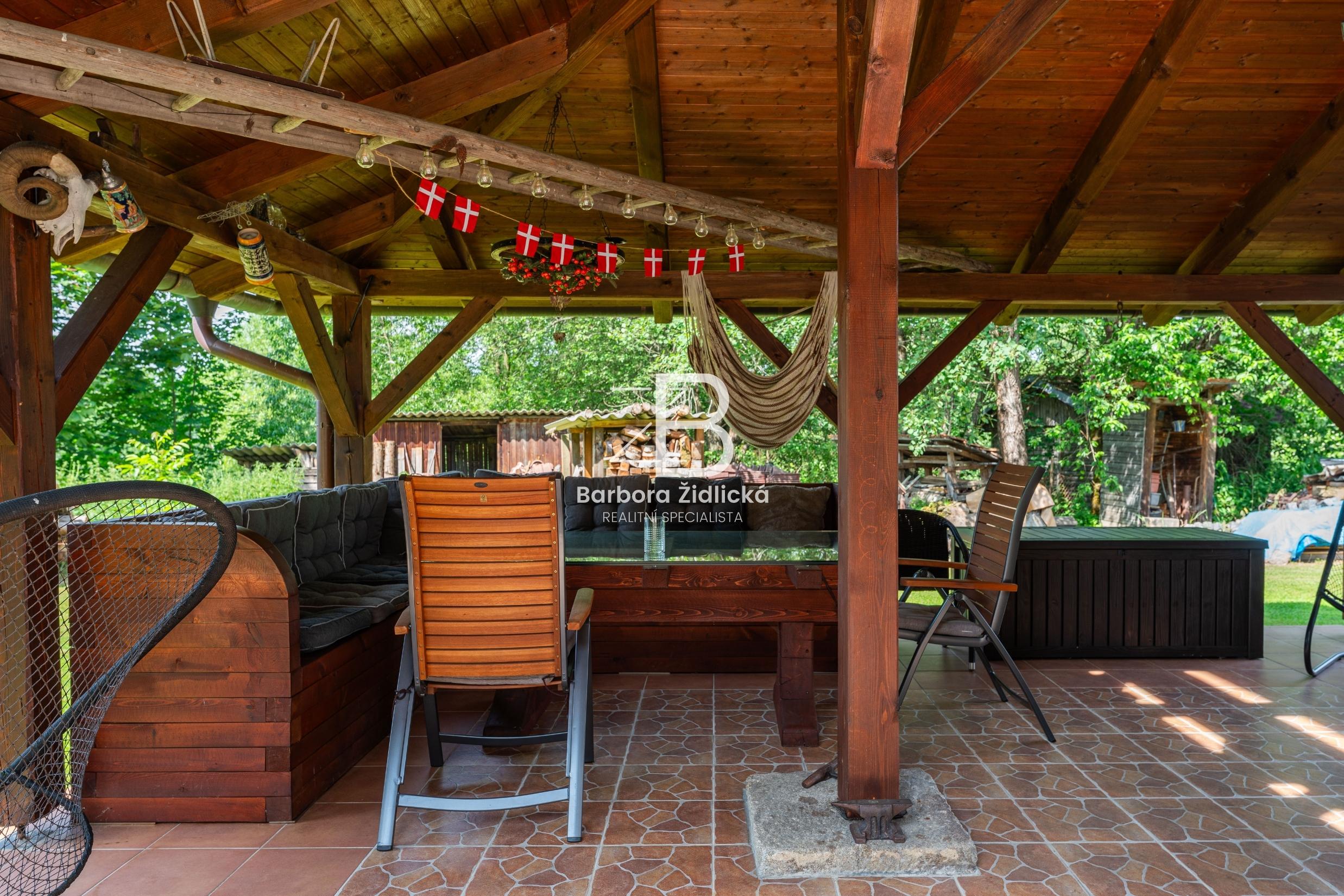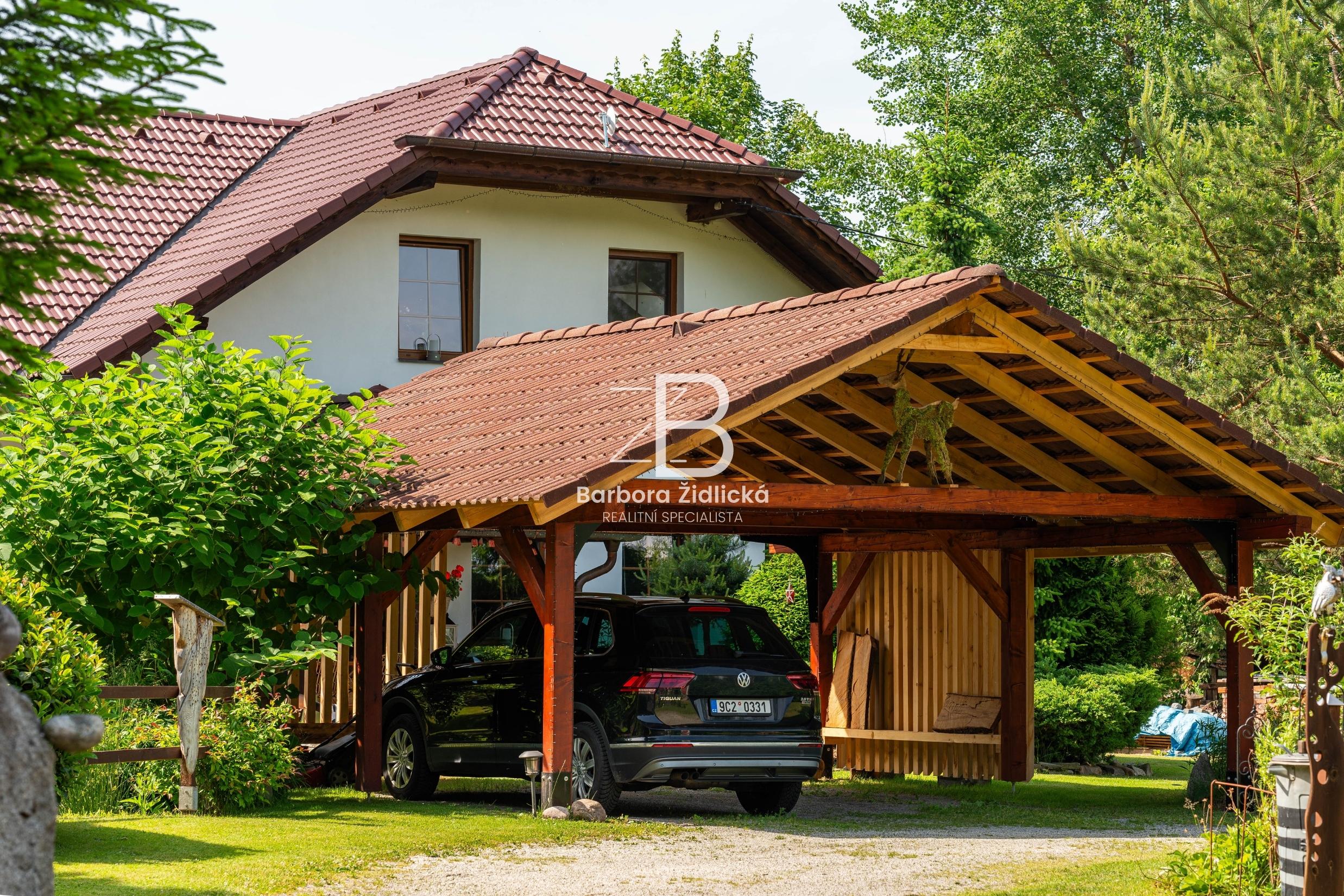 Celý pozemek o výměře 4235 m2 je obklopen vzrostlou zelení, která Vám zaručí naprosté soukromí. Součástí je útulná terasa s příjemným posezením a grilem pro Vás a Vaše přátele. Před domem se nachází přístřešek k parkování pro dvě auta. Třešničkou na dortu je jezírko s vlastním molem, u kterého se perfektně relaxuje.