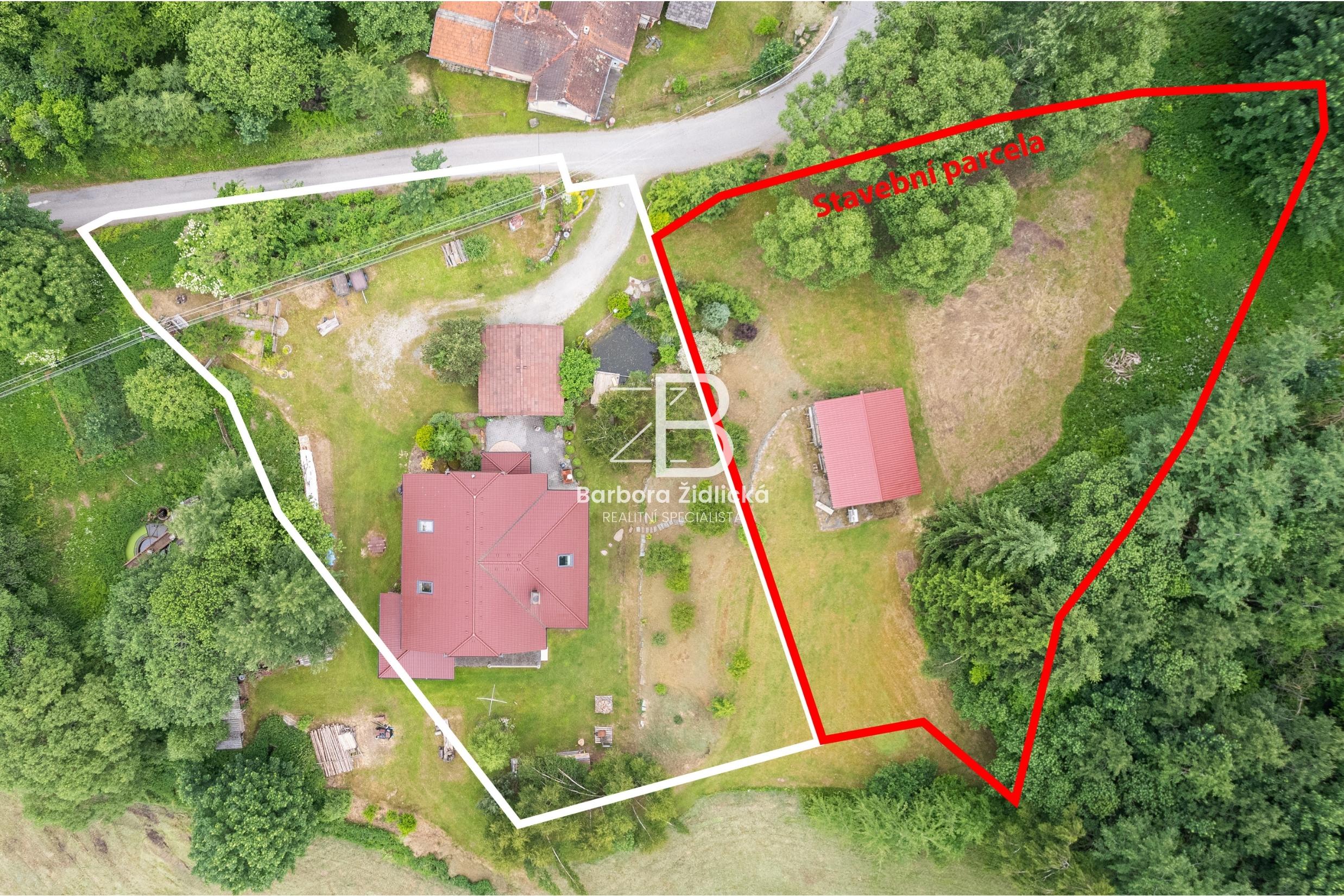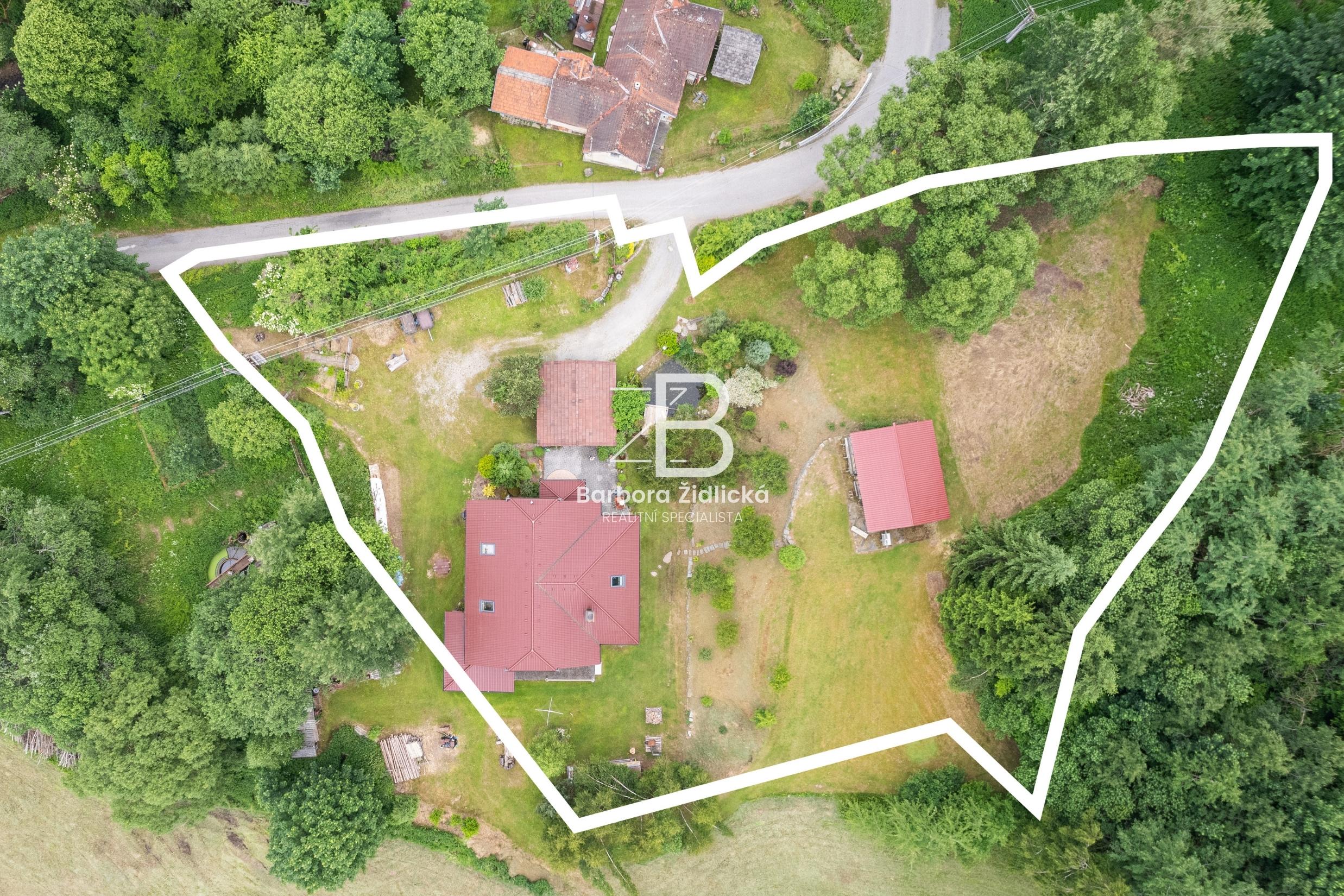 Dům s užitnou plochou 200,5 m2 stojí na pozemku s parcelním číslem 537/1 o celkové rozloze 1262 m2. Součástí prodeje je i druhý pozemek s parcelním číslem 538/1 o celkové rozloze 2135 m2. Tento pozemek je dle územního plánu obce označen jako plocha smíšená obytná a je určen k výstavbě rodinného domu. V současné době se na pozemku nachází zahradní dílna.