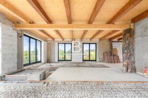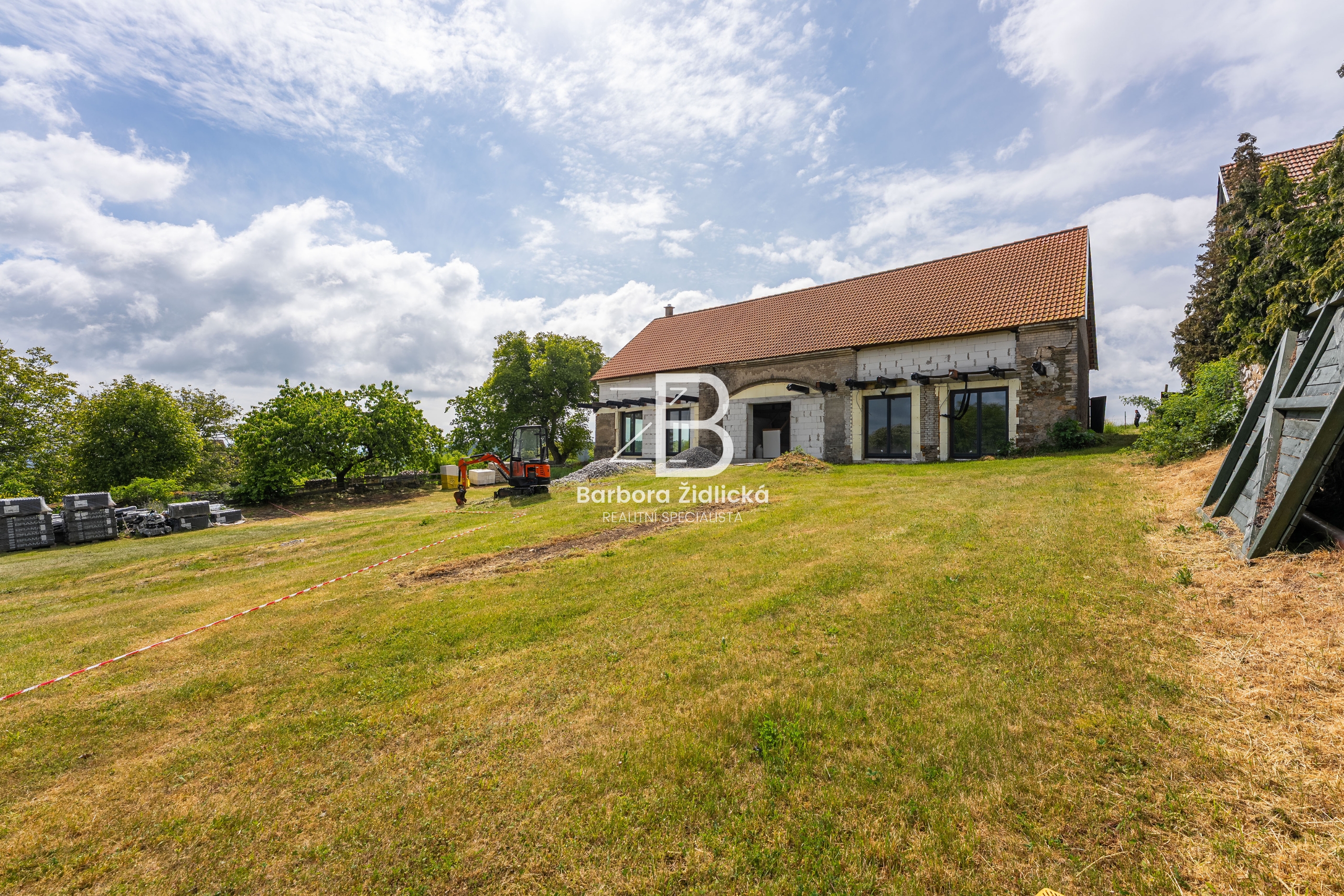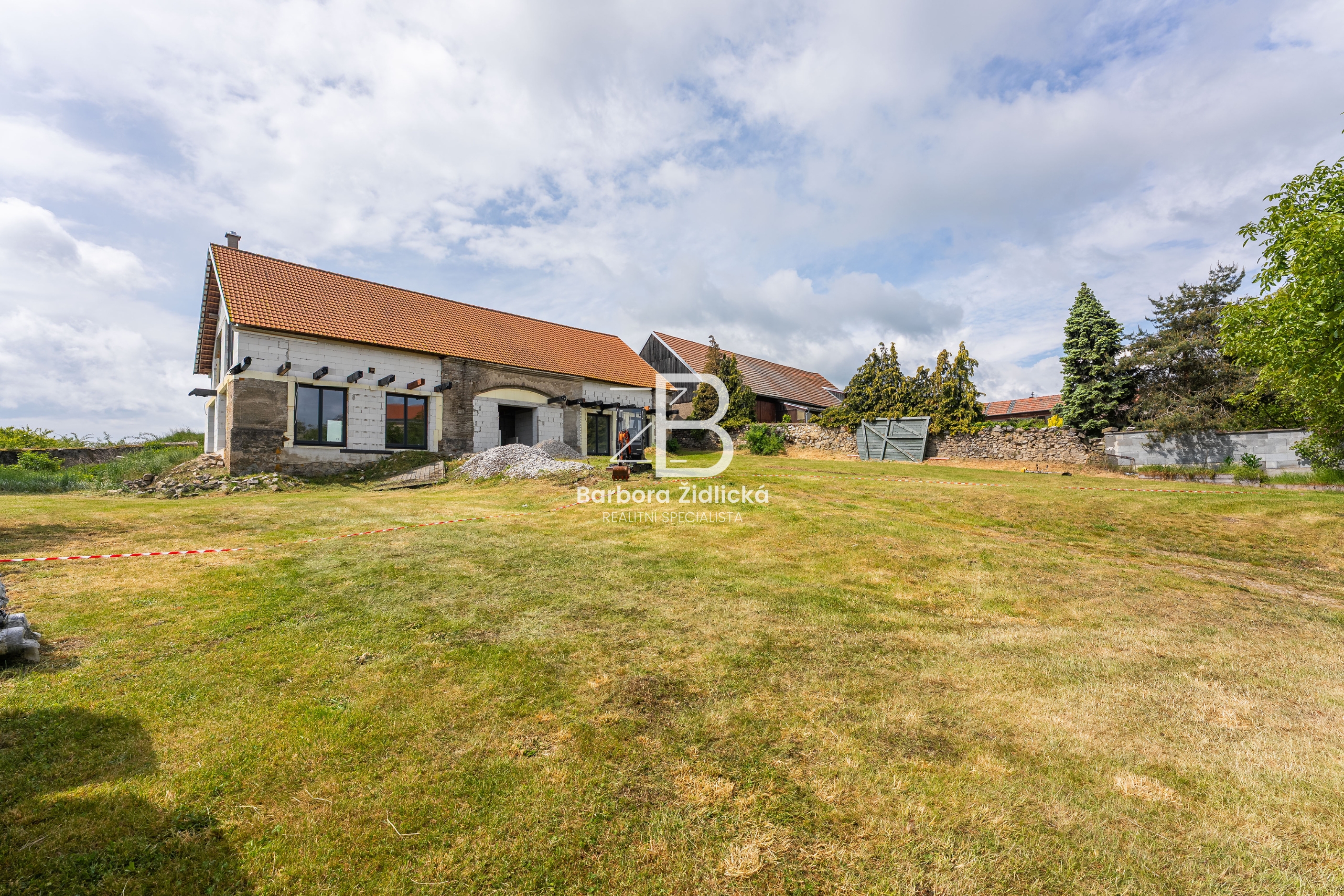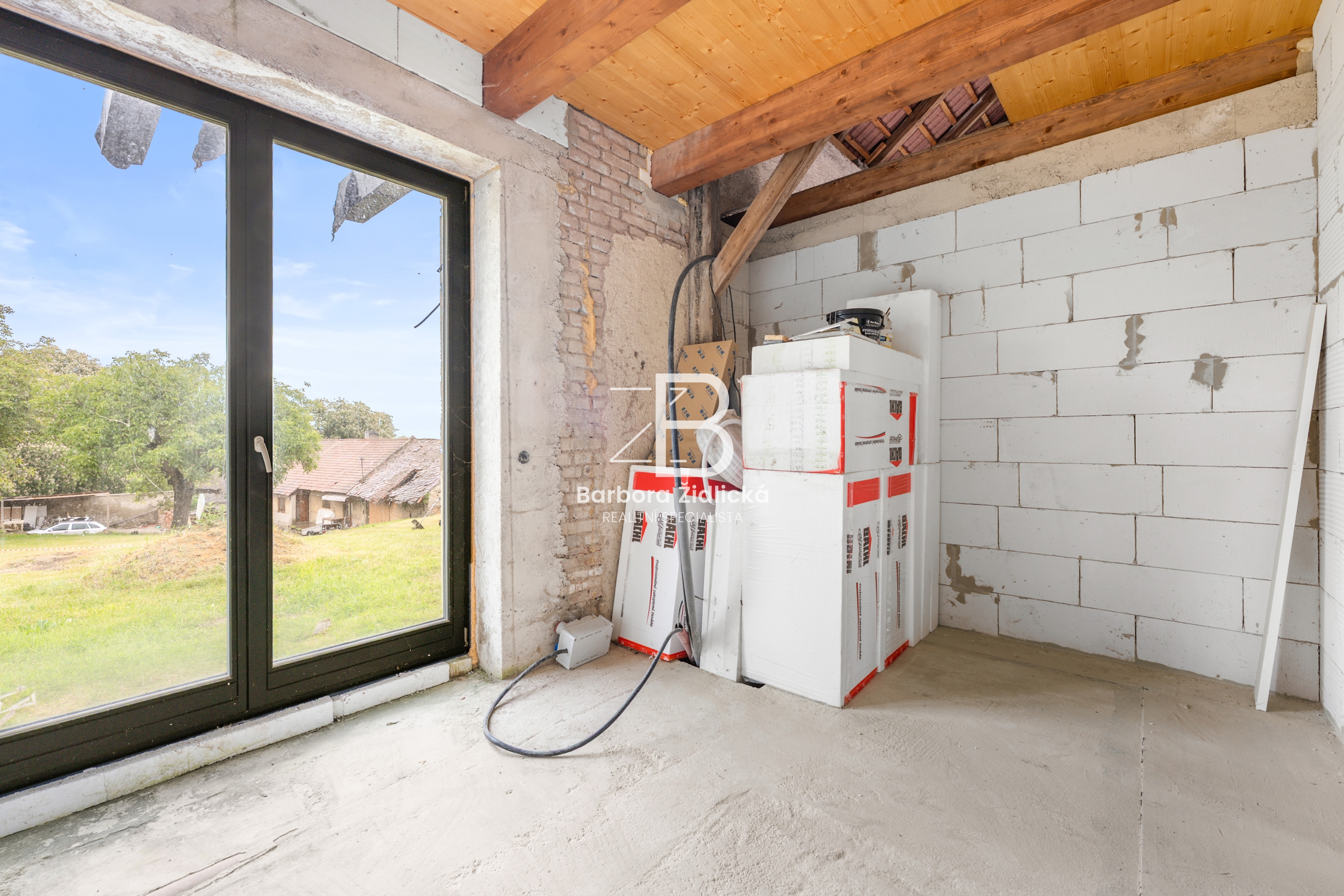 Dům prošel kompletní přestavbou – nezůstal kámen na kameni. Vzniká zcela nová stavba na nové základové desce, vyzděná ze 60cm Ytongu (není třeba zateplovat), se střechou z roku 2020 a osazená velkorysými francouzskými okny s trojskly ve vysokém standardu. Uvnitř je vše připraveno k dokončení podle vlastního vkusu – včetně originálního architektonického prvku v podobě masivního kmene stromu v hlavní obytné části, který vytváří jedinečnou atmosféru.