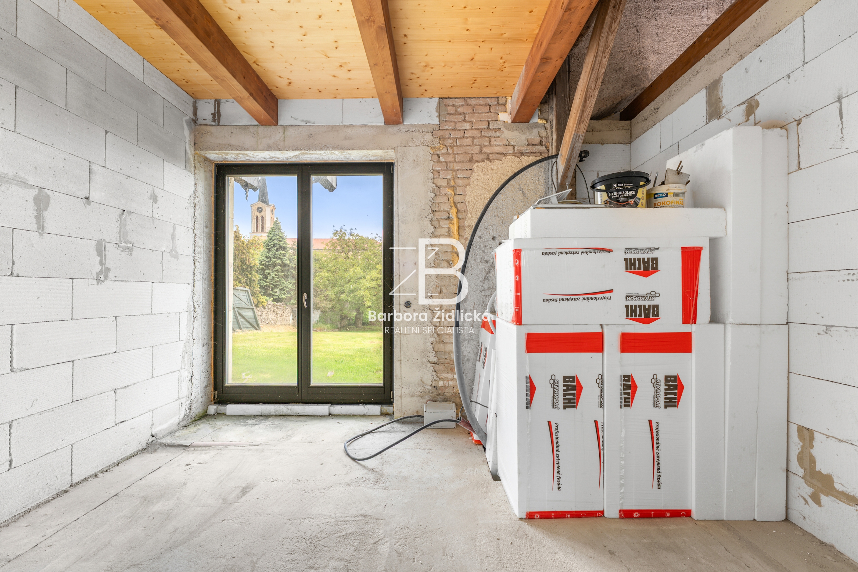 Součástí prodeje je také stavební materiál – biodesky v hodnotě téměř jednoho milionu korun a okna pro horní patro. Po dostavbě nabídne dům užitnou plochu 384 m² a dispozici 11+kk, což umožňuje jak komfortní rodinné bydlení, tak například propojení s ateliérem, pracovnou nebo vícegeneračním uspořádáním. Hlavní část investice je za vámi – zbývá už jen dotvořit interiér podle svých představ a potřeb.